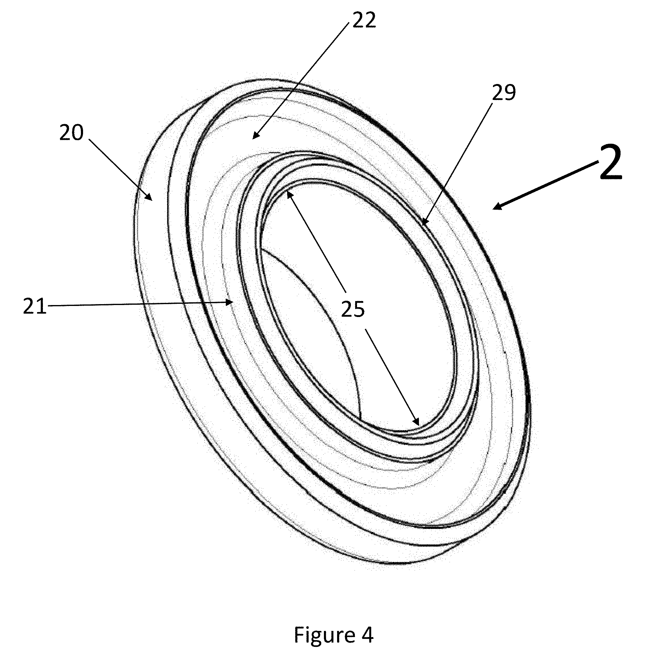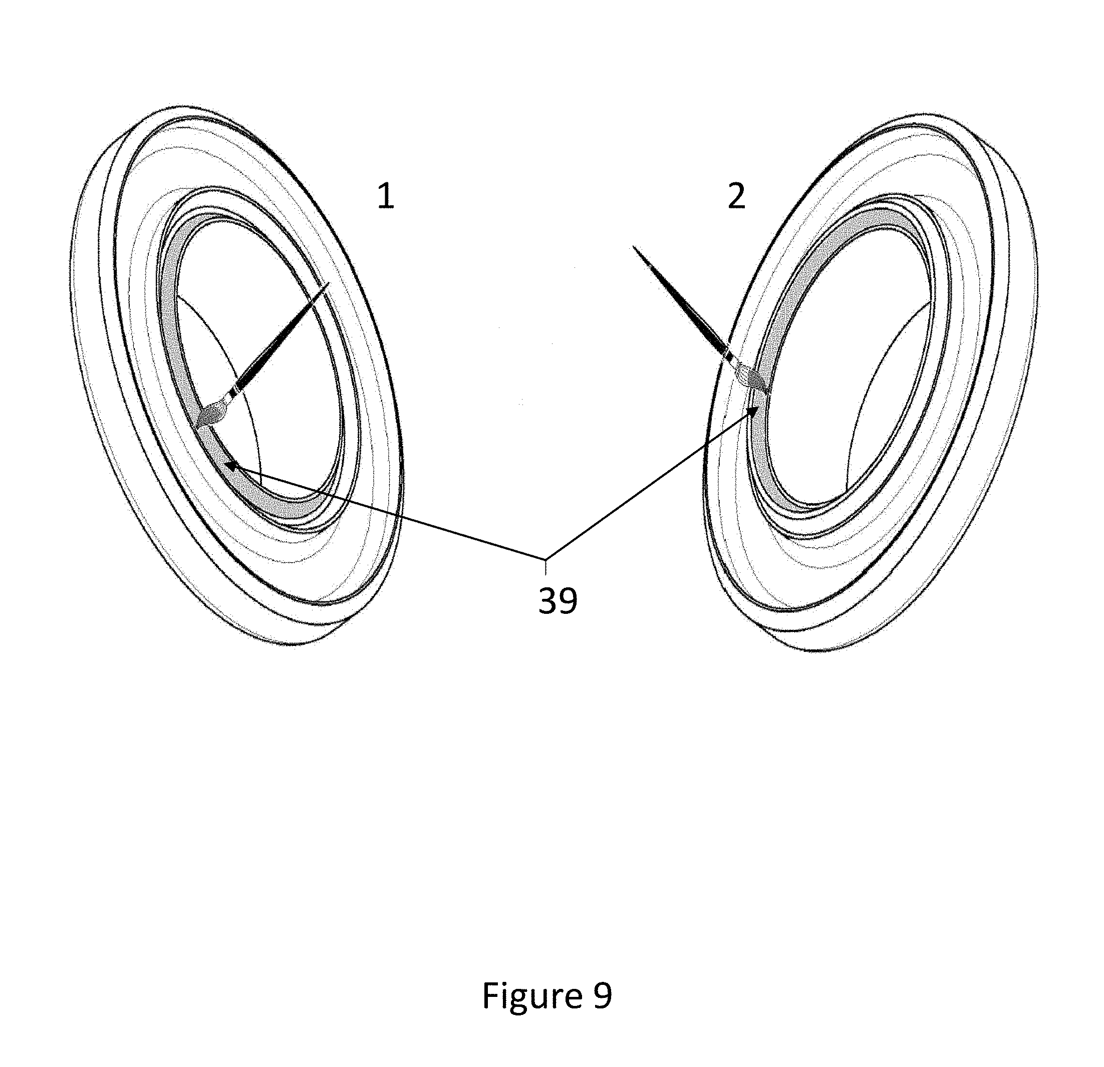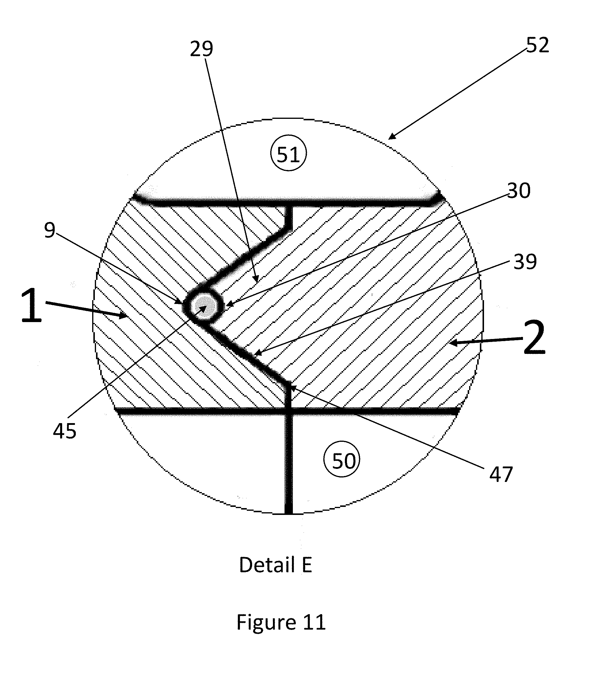 In any given project, the engineers design the coating according to the chemical and physical requirements of the fluid transported by the pipe and, as this patent application allows the use of all types of paint, including AWWA and other related standards, it gives the engineers the technical independence to select the most suitable coating without being damaged or destroyed, eliminating the risk of corrosion in welded joints. Device Assembly Procedure: Before treating the pipes in the workshop with abrasive blasting and the application of coating, a part 1 is welded (42) to one end and a part 2 is welded (43) to the opposite end, both parts being left as fittings (36 and 37) of each pipe. After the parts have been welded all weld slag and blobs must be removed. Prior to the treatment with abrasive blasting and painting the inner side of parts (1 and 2) of both fittings must be protected. With the parts (1 and 2) protected, all the surfaces of the pipe and parts (1 and 2), must be treated with abrasive blasting and then apply the coating as specified by the engineering, both joints being welded (42 and 43), protected by the coating and, therefore, eliminating all possible electrochemical corrosion of the areas affected by heat (ZAC) produced in the welding process. Once the paint is cured, the protection of the parts (1 and 2) of both fittings must be removed and a highly adhesive epoxy seal ( The epoxy seal must have the following properties: