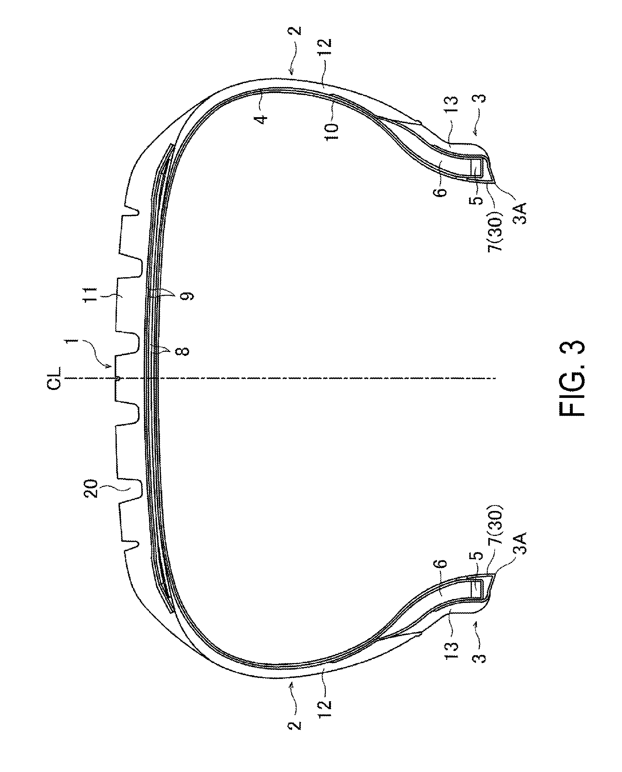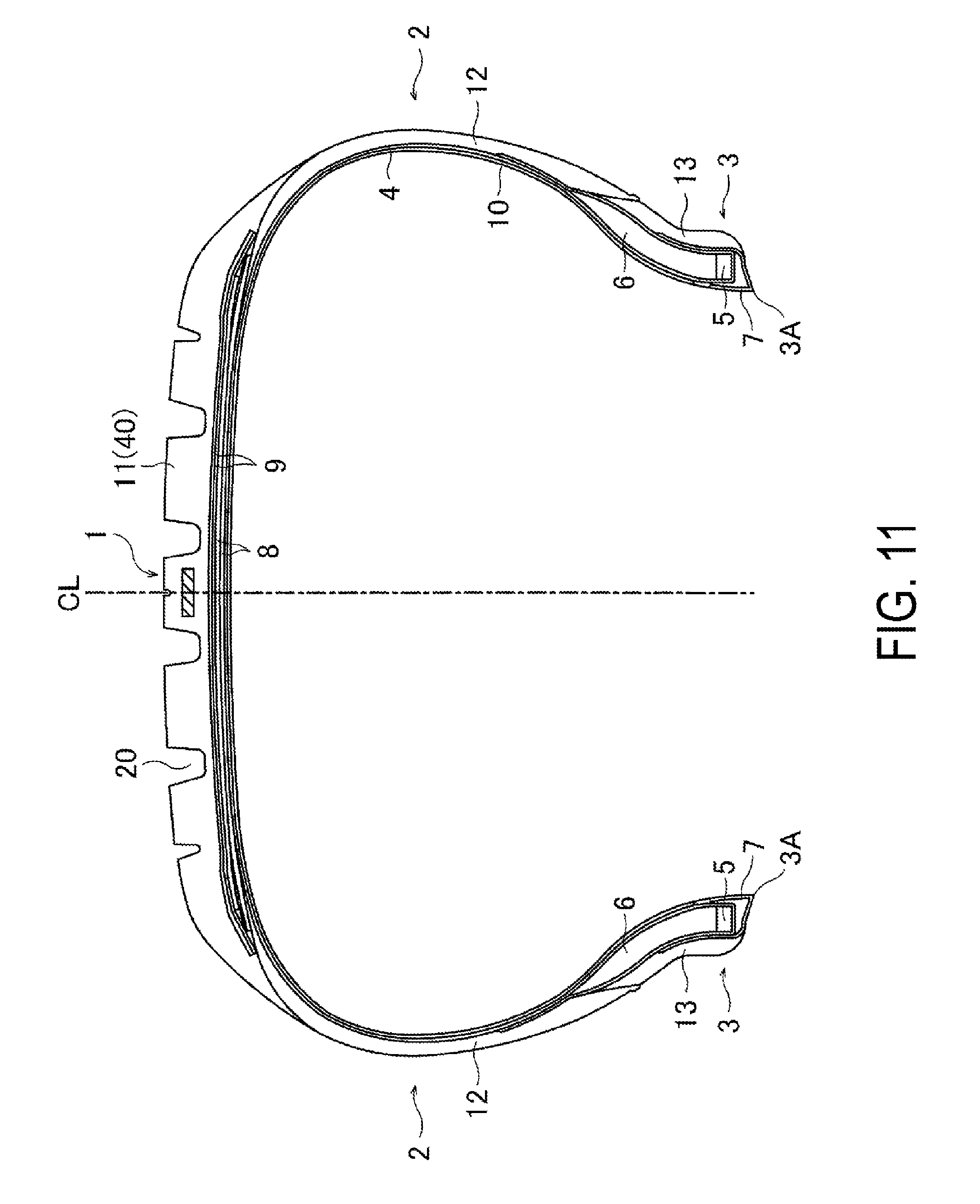 1. A pneumatic tire comprising:
