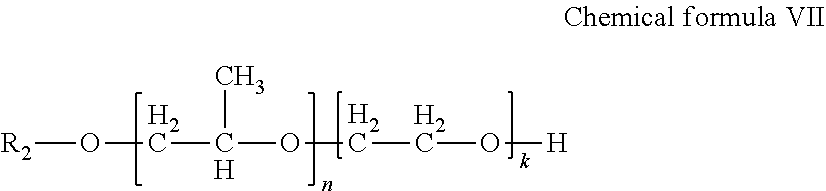 wherein the aliphatic alcohol alkylene oxide compound is at least one compound represented by formula VI or at least one compound represented by formula XII: