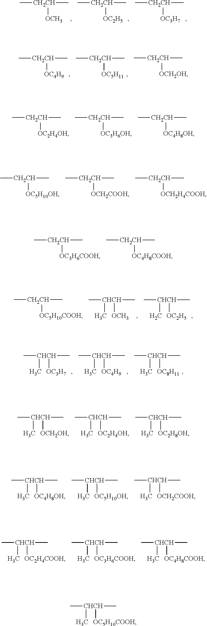 where m represents 0 or an integer of from 1 to 23, n represents an integer of from 1 to 10, and k represents 0 or an integer of from 1 to 7, a represents an integer of from 1 to 23, b represents 0 or an integer of from 1 to 23, and R represents a hydrogen atom or an alkyl group having 1 to 4 carbon atoms.