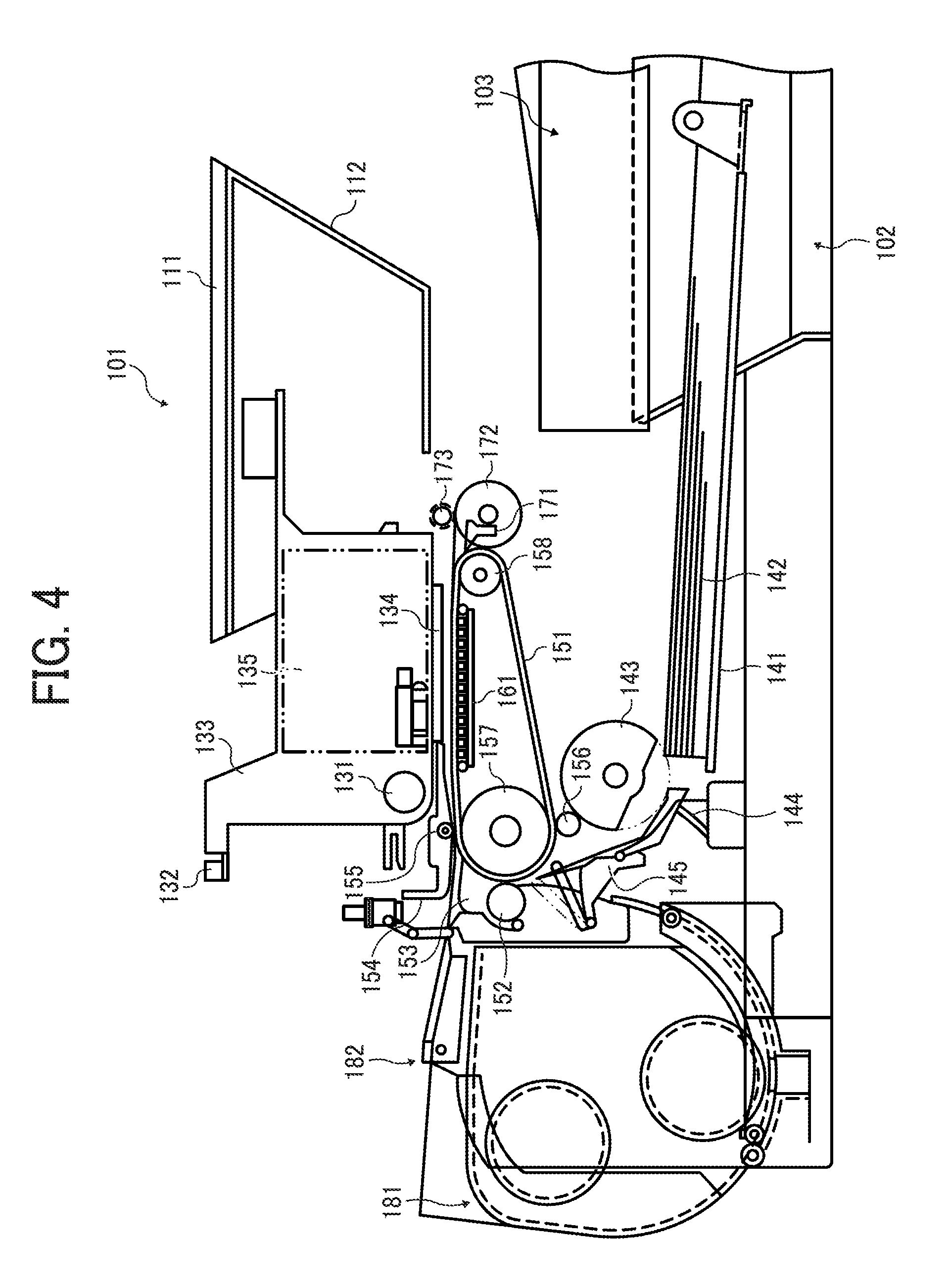 FIG. 4 is a schematic diagram illustrating a sectional view of an example of the entire configuration of the image forming apparatus.