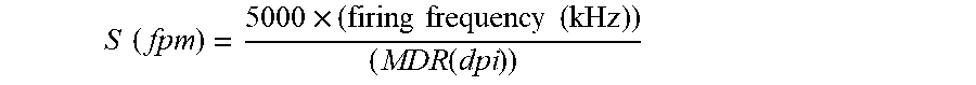 5. The method of claim 1, wherein the printhead comprises a maximum firing frequency that is equal to or less than about 20 kHz, and wherein the firing frequency is equal to or less than the maximum firing frequency.