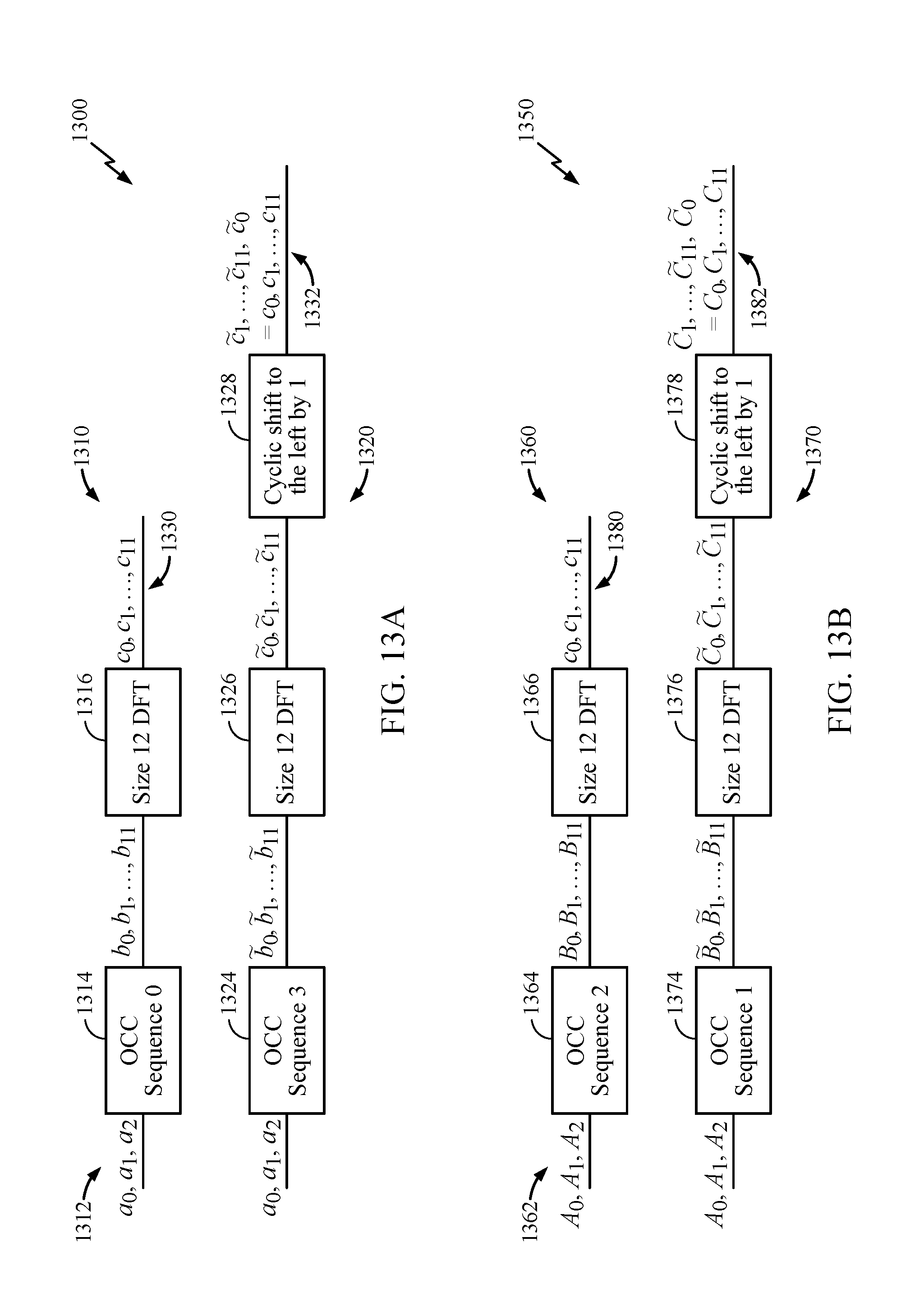 Thus, signals (e.g., PUCCH signals) from 4 UEs may be multiplexed together in a single RB. Transmissions using the 4 OCC sequences may achieve a target PAPR. For example, the maximum PAPR of the OCC sequences of the present disclosure may be low, e.g., 1.7 dB for pi/2-BPSK modulated signals, compared with a 3.7 dB maximum PAPR for pi/2-BPSK modulated signals using the OCC sequences shown in
