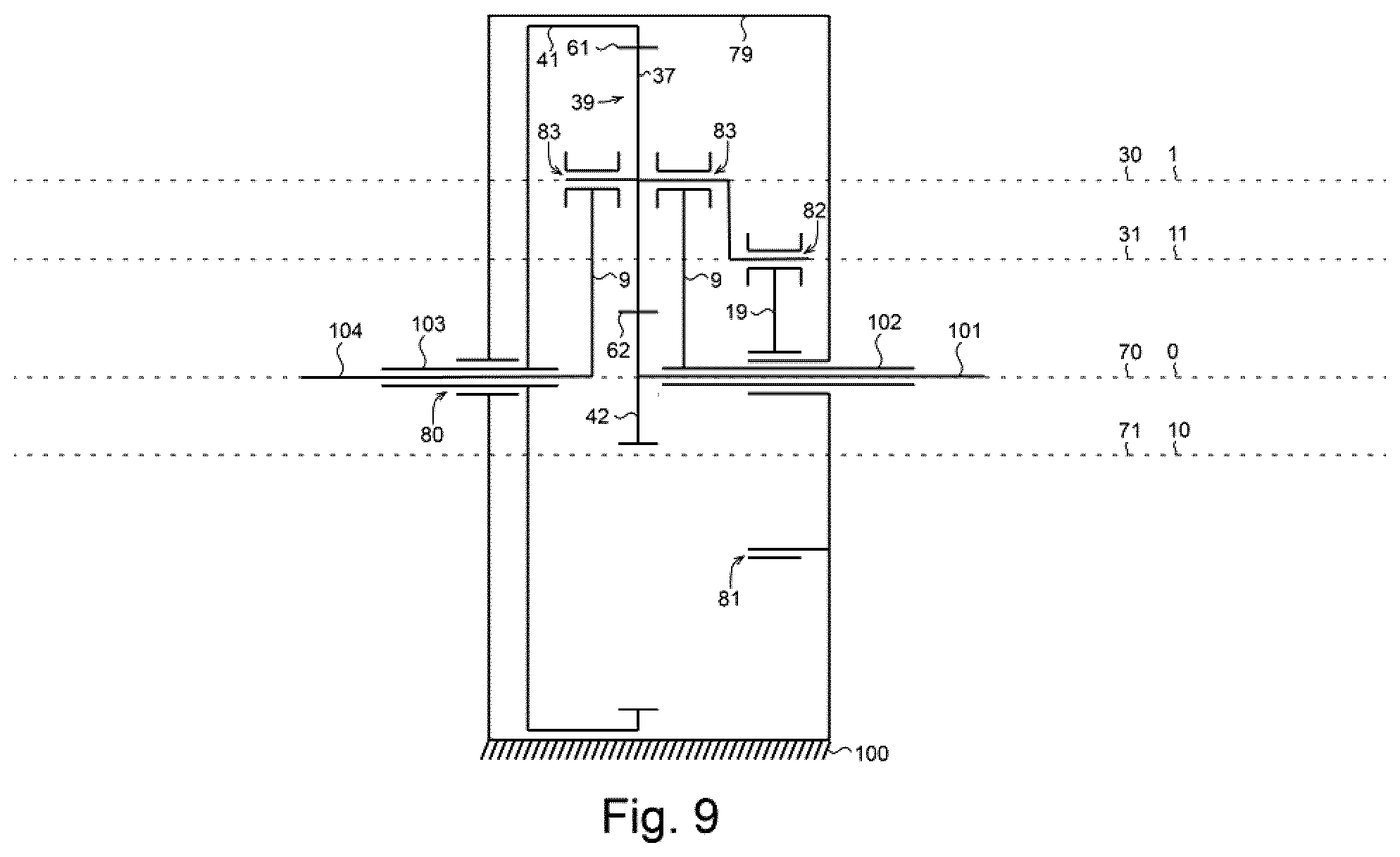the reference member (79) comprises a central axis (70) and a first offset axis (71) which are substantially parallel and spaced a first offset distance (91) apart; the first offset carrier (19) comprises a central axis (10) and a number of radial axes (11) equal to the number of offset members (39); all radial axes (11) are substantially parallel to, spaced a radial distance (93) apart from, and arranged circumferentially around the central axis (10); the central axis (10) and first offset axis (71) are substantially co-axial and rotatably coupled (81); each offset member (39) is a pinion engaging member comprising a first step (37), a central axis (30), and a first offset axis (31); the central axis (30) and first offset axis (31) of each offset member (39) are substantially parallel and spaced the first offset distance (91) apart; each first offset axis (31) and a different radial axis (11) are substantially co-axial and rotatably coupled (82); the first central member (41) is a ring engaging member that simultaneously engages (61) all first steps (37); and the first central member (41) and the central axis (70) are substantially co-axial and rotatably coupled (80). 2. The apparatus of 3. The apparatus of the central carrier (9) comprises a central axis (0) and a number of radial axes (1) equal to the number of offset members (39); all radial axes (1) are substantially parallel to, spaced the radial distance (93) apart from, and arranged circumferentially around the central axis (0); and each central axis (30) and a different radial axis (1) are substantially co-axial and rotatably coupled (83). 4. The apparatus of the reference member (79) further comprises a second offset axis (72) which is substantially parallel to, and spaced a second offset distance (92) apart from the central axis (70); each offset member (39) further comprises a second offset axis (32) which is substantially parallel to, and spaced the second offset distance (92) apart from the corresponding central axis (30); the second offset carrier (29) comprises a central axis (20) and a number of radial axes (21) equal to the number of offset members (39); all radial axes (21) are substantially parallel to, spaced the radial distance (93) apart from, and arranged circumferentially around the central axis (20); the central axis (20) and second offset axis (72) are substantially co-axial and rotatably coupled (84); and each second offset axis (32) and a different radial axis (21) are substantially co-axial and rotatably coupled (85). 5. The apparatus of 6. The apparatus of 7. The apparatus of 8. A method comprising: