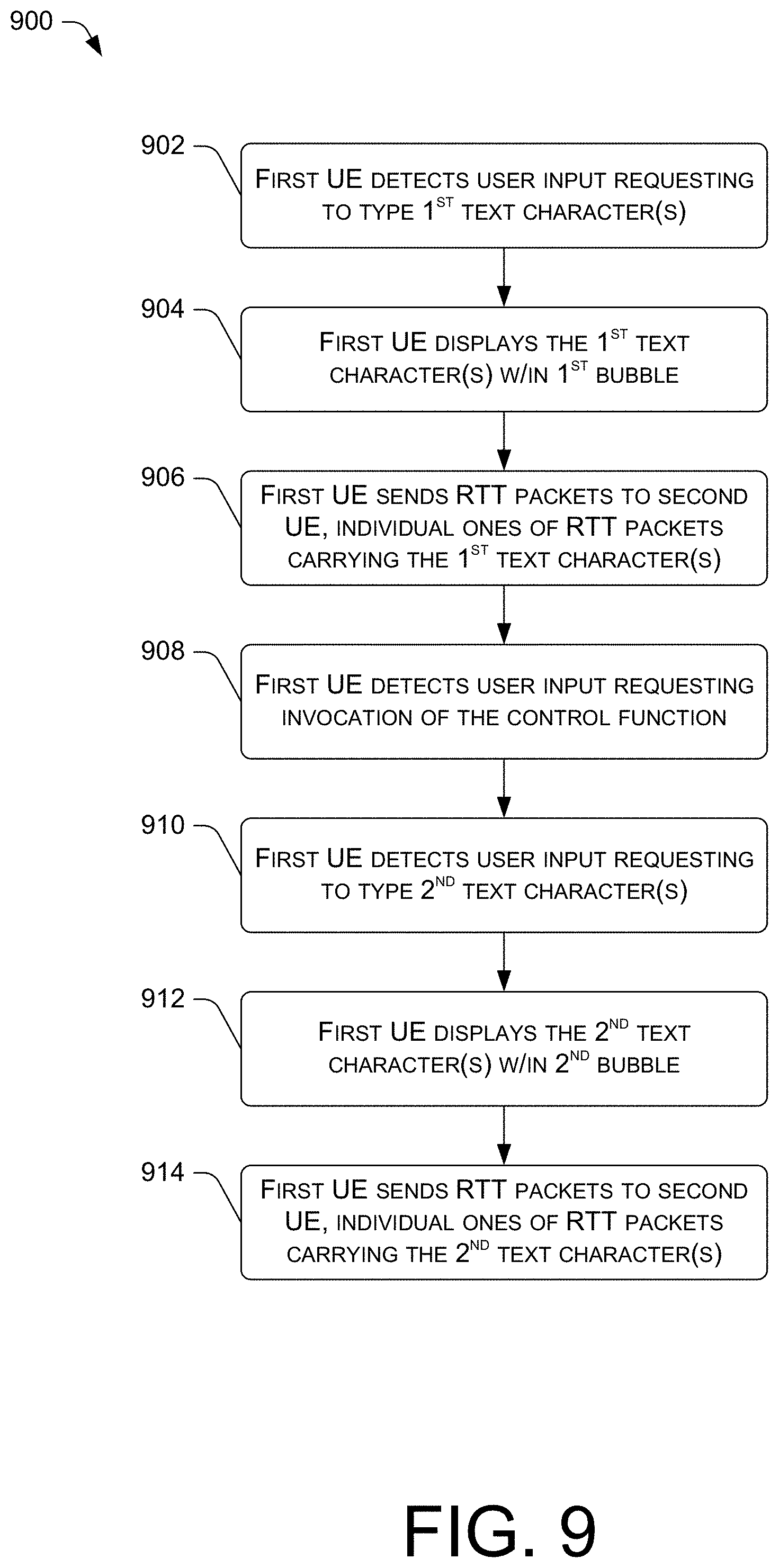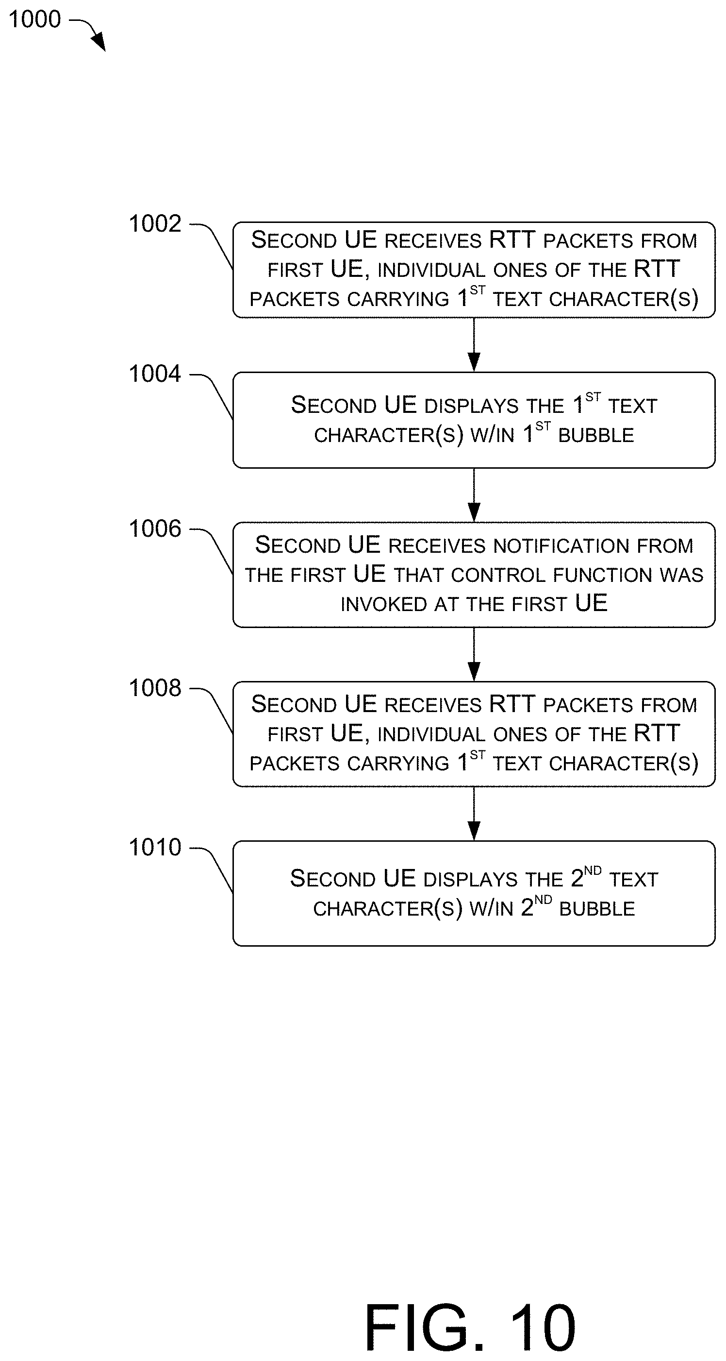 a processor; an input device; a network interface; a display; and memory storing computer-executable instructions that, when executed by the processor, cause a first UE to, during a real time text (RT) communication session: