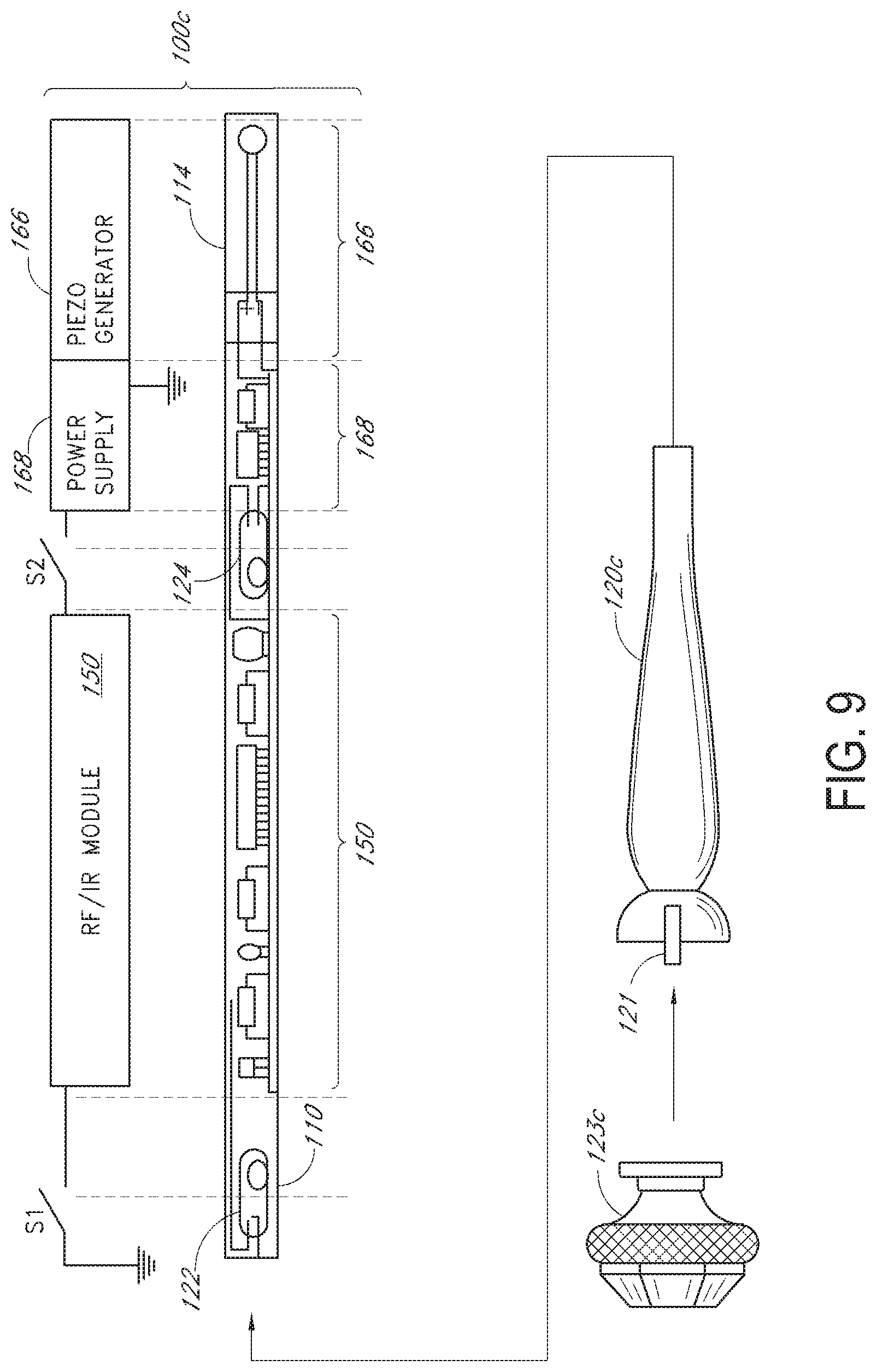 at least one radio frequency (RF) transceiver configured to produce an external RF field that energizes an external antenna by inductive coupling over a predetermined distance so that data can be accessed via the external antenna; and