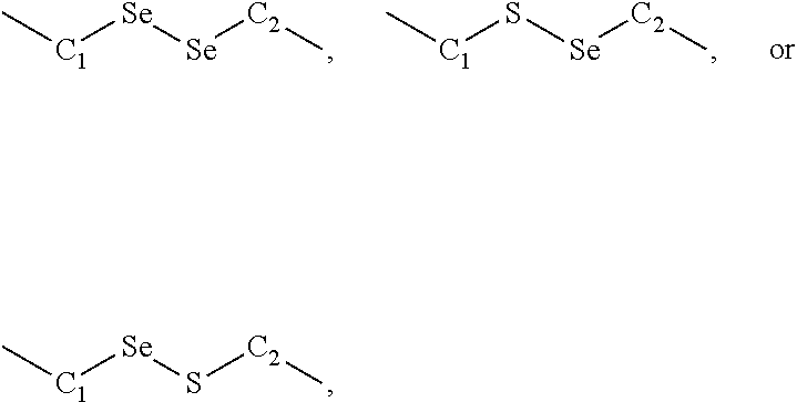 wherein each X may be the same or different and represents a sulfur (S) or a selenium (Se) and each C represents a beta-carbon of one of such cysteine or selenocysteine residues.