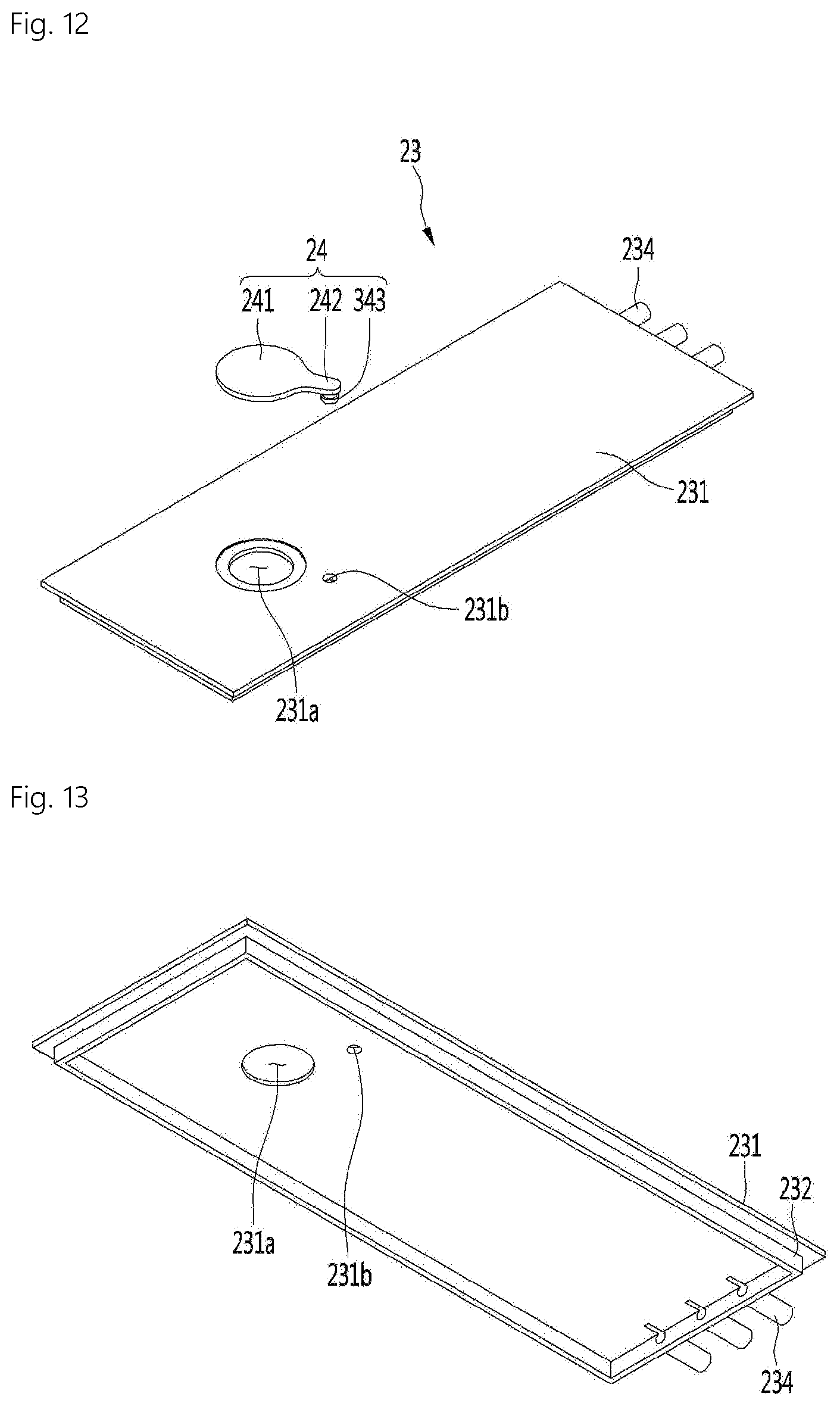 In detail, the injection hole cover 24 may include a cover body 241 that shields the injection hole 231a, an extension end 242 extending from an edge of the cover body 241, and an insertion protrusion 243 protruding from the lower surface of the end portion of the extension end 242. The insertion protrusion 243 is inserted into the fastening hole 231b formed in the case cover 23.