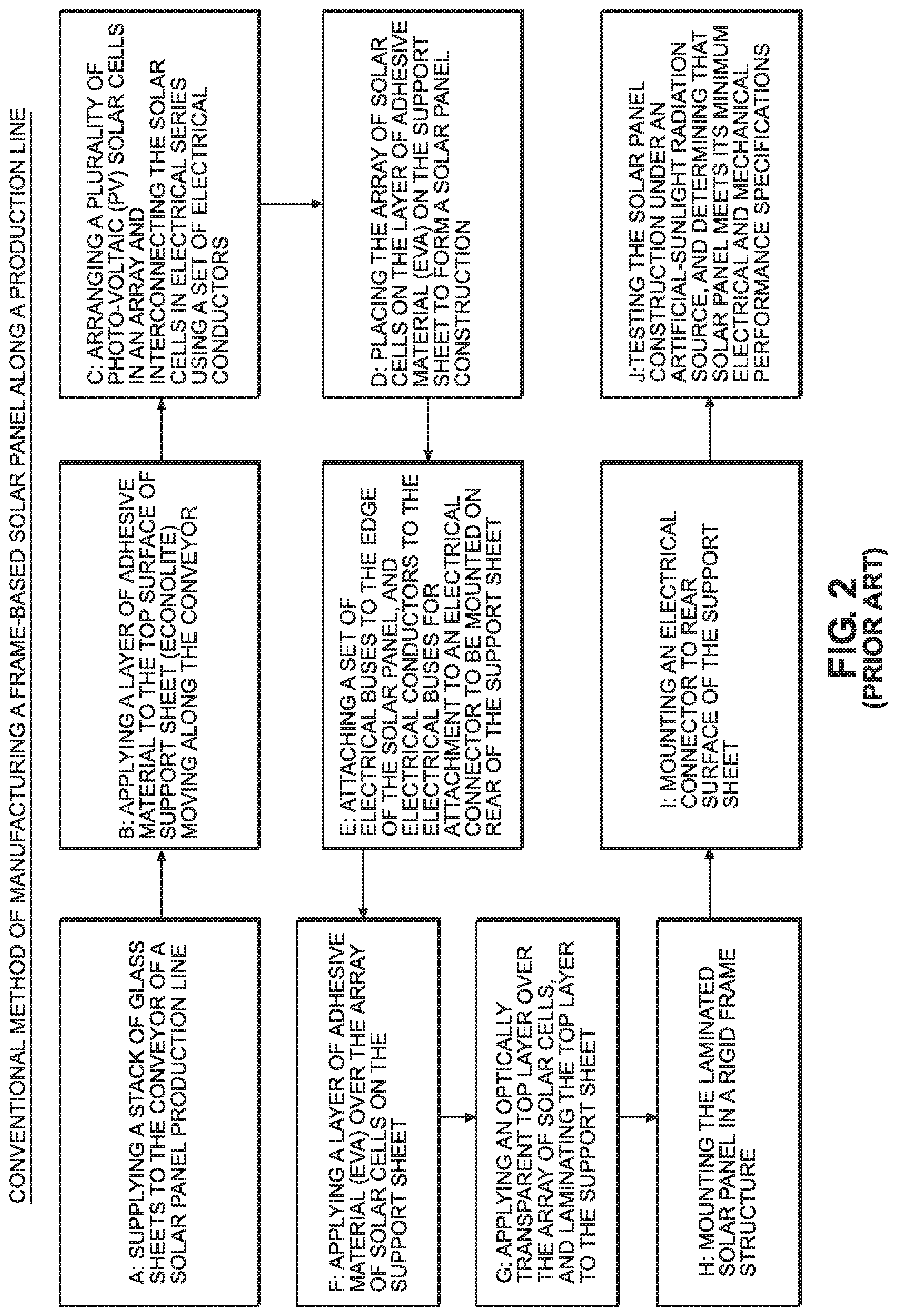FIG. 2 describes the high-level steps involved in carrying out the method of constructing the prior art framed solar panel construction shown.