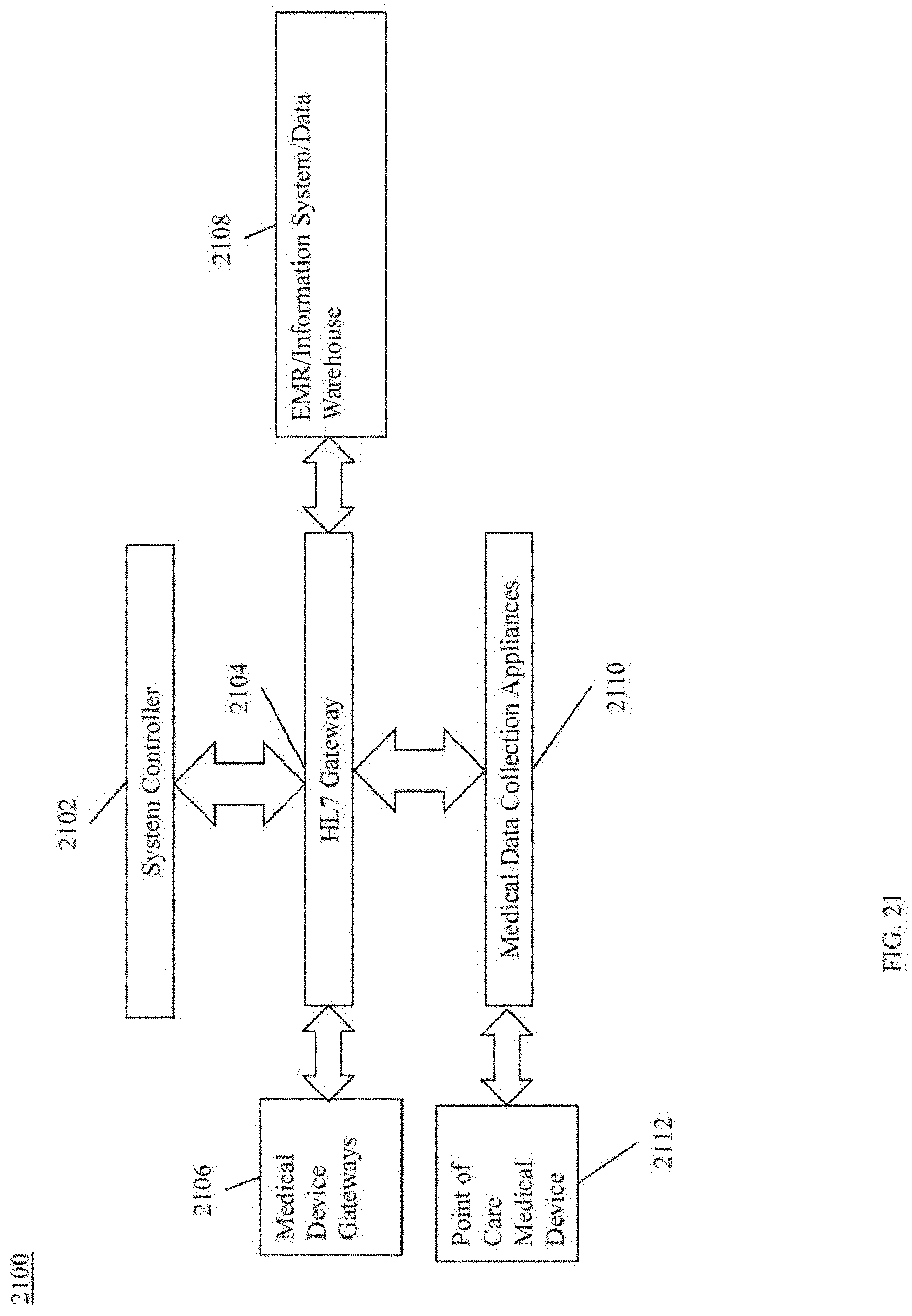 As a result, client needs such as connectivity requirements, high acuity, integration interface particulars with electronic health records (EHRs), documentation and reimbursement requirements, patient safety and hazard mitigation, and established workflow practices can be addressed according to aspects of the present invention. In embodiments, the present invention can be used, for example, to help prevent patient deaths due to opioid respiratory insufficiency, to monitor pre-discharge infants for apnea and/or cardiovascular function, monitor children at home receiving pain medication or bi-level positive airway pressure (BiPAP) therapy, and monitor children during transport to and from the intensive care unit. It should be understood that these uses are only examples and that other uses are also contemplated by the present application. Further examples are illustrated in the figures below. Additional features include the capability to visualize twenty-four (24) hours of medical device data on a patient collected through a data management system, with the option to extend the monitoring indefinitely for any duration of patient length of stay at any level of data granularity, up to and including high-frequency data collection such as waveforms. For example, according to aspects of the present invention, a visualization and validation tool, and a platform for data analytics, e.g., an analytics platform can be provided. In embodiments, further features include the capability to transmit data manually or automatically to electronic medical records (EMRs) or other end-point clinical information systems using Health Level Seven (HL7) results transactions in text or XML format. In embodiments, patient identification can originate with a hospital master patient registration system (e.g., an EMR). In embodiments, locations of monitored patients can be determined per the procedure established for device managers utilized by a particular patient. As a result, knowledge of the medical device, patient demographics, patient and medical device location can be provided to a user. Furthermore, data can be displayed in a synchronized, columnar format that aligns the time stamps of all findings from potentially disparate sources associated with the same patient (i.e., different medical devices associated with the same patient but that are collecting data independently) in a visual display at a point of care regardless of data source (i.e., from a variety of medical devices). In embodiments, different classes of users can access the systems described herein, for example, clinical users and non-clinical users (e.g., individuals associated with biomedical or clinical engineering or health information technology departments). Clinical users can include physicians, nurses, and respiratory therapists. It should be understood by those of ordinary skill in the art that the types of clinical users are only illustrative and that other types of clinical users are further contemplated according to aspects of the present invention. In embodiments, clinical users can have role-based functional capabilities and notifications can be provided to each individual user based on their role. The clinical users can have the ability to view, select and transmit patient device data to the EMR. In embodiments, clinical users can have access to a “Domain” that specifies the hospital system to which the clinical user has access and does not have any restrictions on date/time for clinical access. Furthermore, the clinical user's home page can contain their patient assignments and display icons next to each patient for their devices/templates/charts. These charts can display a status of patient device data capture, and acceptance and transmission to EMR with its color representing the data “state” (e.g., data are transmitted or not transmitted-akin to clinical validation). In embodiments, IT users can have access to both the data management system and the systems described herein. That is, IT users can access templates and patient charts and the data management system. The IT users can also receive notifications when a medical device malfunctions or data is not properly transmitted to an EMR. It should be understood by those of ordinary skill in the art that additional classes of users are further contemplated according to aspects of the present invention. According to aspects of the present invention, the systems described herein can be used for data collection, storage and clinical information management from bedside and independent point of care biomedical devices. In embodiments, clinical information management systems can be accessed either directly or through networks with medical devices. Additional advantages include the capability to provide patient information and surveillance of monitored patients at the point of care location and at a remote supplementary care location through networking technology. In embodiments, physiologic data and other patient information can be displayed to and used by clinicians to assist with diagnostic aid. In embodiments, the user-interface can be a web-based application that allows the display of patient monitoring data aggregated from a data management system in user-defined formats. In embodiments, the user-interface can be accessed via a dedicated URL. In embodiments, the user-interface can be web-based and accessed from any web browser. In one example, not intended to be limiting, a browser can be used that supports drawable regions defined in HTML code with height and width attributes that allows for dynamic, scriptable rendering of 2D shapes and bitmap images, such as, canvas elements in HTML 5. In embodiments, the user-interface can be accessed on any computing device, e.g., a smartphone, tablet PC, laptop computers, etc. In embodiments, the user-interfaces described herein can be shown on a web-browser using a computing device 2008 as described with respect to In embodiments, con