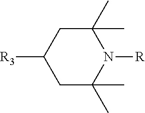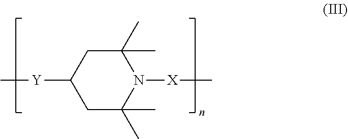 where R is as hereinbefore defined and R3is an organic group that may comprise at least one heteroatom, e.g. OCO—C1-20alkyl or C1-20alkyl; or wherein the hindered amine light stabiliser comprises repeating units of formula (III)