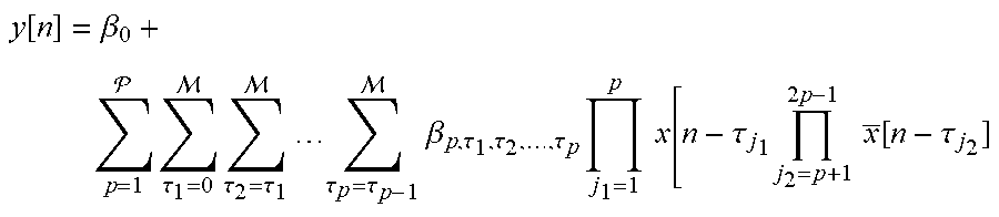 It may be observed that other models such as static polynomials, memory polynomials and combinations of the Wiener and Hammerstein models are all subsets of the full Volterra description. As previously stated, empirical measurements are needed to parameterized PA model based on Volterra series expansion. A subset of the Volterra Series is the memory polynomial with polynomial representations in several delay levels. This is a simpler form of the general Volterra series. The advantage of this amplifier model is its simple form still taking account of memory effects. The disadvantage is that the parameters have to be empirically solved for the specific amplifier in use. The equation above shows an expression for a memory polynomial representation of an amplifier involving two memory depth layers. Each delayed version of the signal is associated with its own polynomial expressing the non-linear behavior. See Filter References, Infra. The purpose of a PA behavioral model is to describe the input-to-output relationship as accurately as possible. State-of-the-art approaches lean on a fundament of the so called Volterra series consisting of a sum of multidimensional convolutions. Volterra series are able to model all weak nonlinearities with fading memory and thus are feasible to model conventional PAs aimed for linear modulation schemes. The GMP model is given by where yGMP(n) and x(n) represent the complex baseband equivalent output and input, respectively, of the model. The first term represents the double sum of so-called diagonal terms where the input signal at time shift l, x(n −l); l∈La, is multiplied by different orders of the time aligned input signal envelope |x(n−l)|2k; k∈Ka. The triple sum represents cross terms, i.e. the input signal at each time shifts is multiplied by different orders of the input signal envelope at different time shifts. The GMP is linear in the coefficients, αk1and bk1m, which provides robust estimation based on input and output signal waveforms of the PAs to be characterized. As a complement to the above, also memoryless polynomial models have been derived based on: It is thus seen that, while the Volterra series has been considered generally in a variety of contexts, and for power amplifier linearization, the particular implementation does not necessarily follow from broad prescriptions. See, Volterra Series Patents, infra. A deep neural network (DNN)-based equalizer is provided to equalize the PA distorted signals at a radio frequency receiver. This DNN equalizer exploits both the Volterra series nonlinearity modeling of PAs, to construct the input features of the DNN, which can help the DNN converge rapidly to the desired nonlinear response under limited training data and training. Conventionally, Volterra series and neural networks are studied as two separate techniques for nonlinear PAs [2]. Volterra series has been a popular choice for constructing the models of nonlinear power amplifiers. Many digital predistorters or nonlinear equalizers have been developed based on such modeling. Similarly, artificial neural networks have also been applied to model or equalizer the nonlinear PAs. By integrating these two techniques together, equalizers may be more efficient and have low-cost implementation than conventional digital pre-distorters, and have high performance in mitigating power amplifier with even severe nonlinearity. In particular, conventional shallow feedforward neural networks using time-delayed inputs have only limited performance. The present DNN equalizer has much superior performance and does not need too much training data. Nonlinear Power Amplifier Models The nonlinear response of the power amplifiers are usually described by the baseband discrete model y(n)=f(x(n)), where x(n) is the input signal and y(n) is the output signal. The function f(x(n)) is some nonlinear function. Consider the baseband discrete model of the PA y(n)=f(x(n), x(n−1), . . . ), where x(n) is the input signal, y(n) is the output signal, and f(·) is some nonlinear function. The simplest nonlinear PA model is the “AM-AM AM-PM” model. Let the amplitude of the input signal be Vx=E[≡x(n)|], where E[] denotes short-term expectation or average. The output sample y(n)'s amplitude Vy=E[y(n)] and additional phase change ψy=E[/y(n)] depend on Vxin nonlinear ways as where g is the linear gain, a the smoothness factor, and c denotes the saturation magnitude of the PA. Typical examples of these parameters are g=4:65, σ=0:81, c=0:58, α=2560, β=0:114, p=2:4, and q=2:3, which are used in the PA models regulated by IEEE 803.11ad task group (TG) [10]. More accurate models should take into consideration the fact that nonlinearity leads to memory effects. In this case, Volterra series are typically used to model PAs [4] [21]. A general model is [5] with up to Pthorder nonlinearity and up to D step memory. Because higher order nonlinearity usually has smaller magnitudes, in order to simplify models, many papers have considered smaller P only, e.g., with only the third-order nonlinearity. It can be shown that only odd-order nonlinearity (i.e., odd k) is necessary as even-order nonlinearity disappears during spectrum analysis. It can be shown that only odd-order nonlinearity (i.e., odd k) is necessary because even-order nonlinearity falls outside of the passband and will be filtered out by the receiver bandpass filters [2]. To illustrate this phenomenon, we can consider some simple examples where the input signal x(n) consists of a few single frequency components only. Omitting the memory effects, if x(n) is a single frequency signal, i.e., x(n)=V0cos(a0+ϕ), where a0=2πf0n. Then, the output signal can be written as where the first line (3) is the inband response with AM-AM & AM-PM nonlinear effects, the second line (4) is the DC bias, and the third line (5) includes all the higher frequency harmonics. At the receiving side, we may just have (3) left because all the other