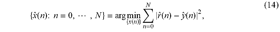 . This linear channel equalization step gives {circumflex over (r)}(n)≈y(n). We can then focus on studying the equalization of nonlinear distortion of the PA, which can in general be conducted with the maximum likelihood method,