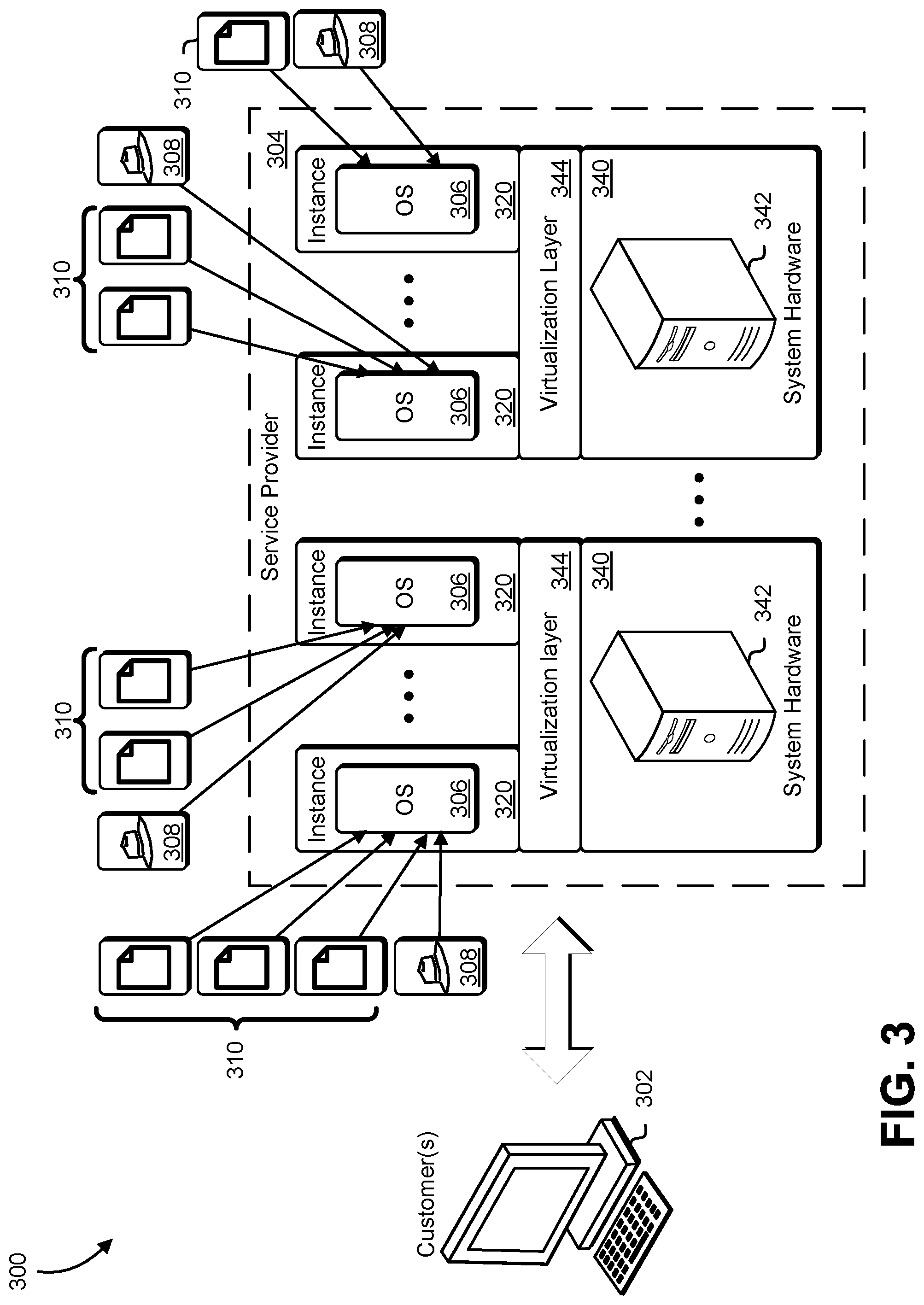 FIG. 3 illustrates an example of virtualization of the container service in accordance with an embodiment;