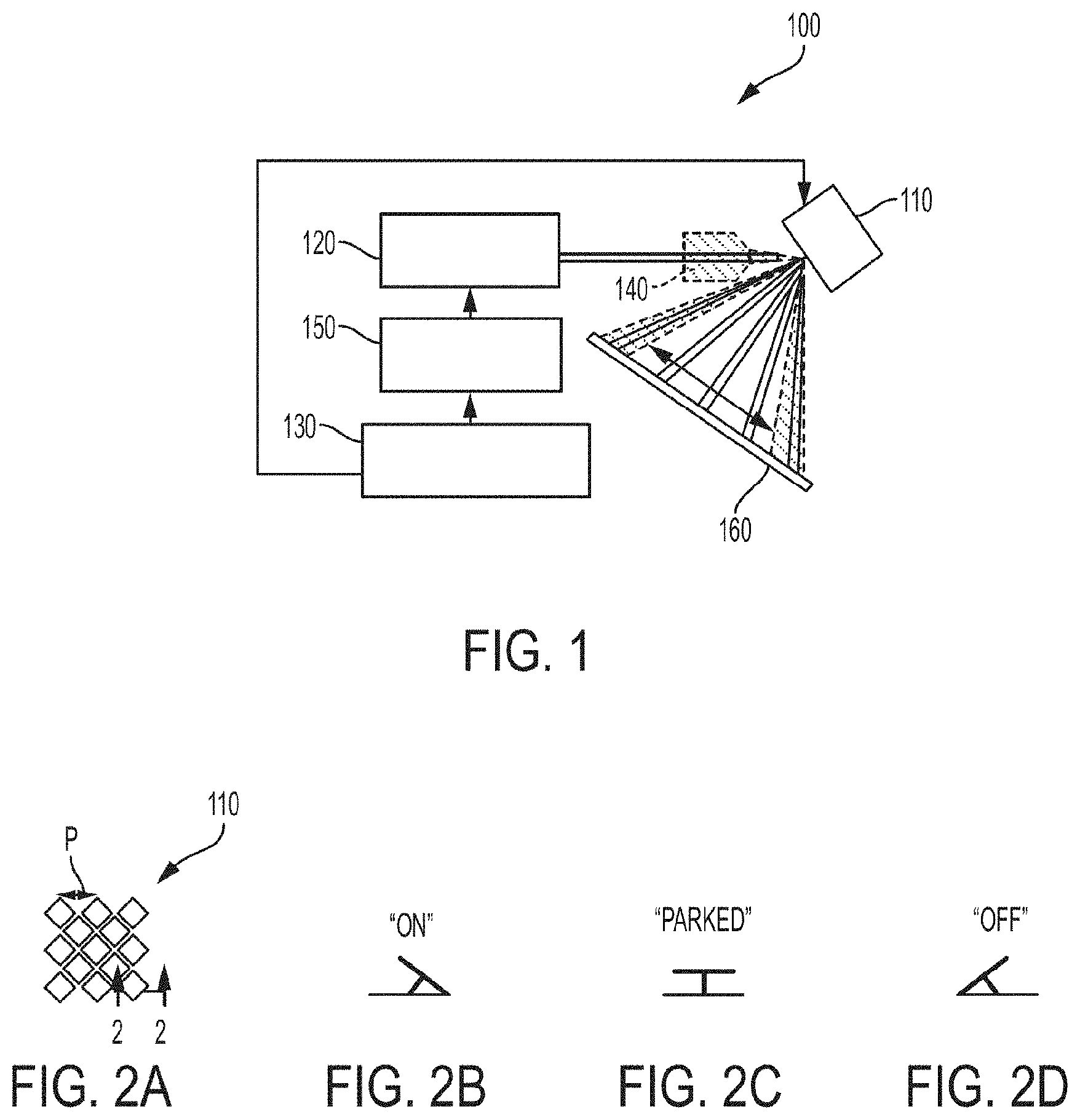 actuating an actuatable micromirror array (AMA) array between a first state and a second state, wherein the AMA has a transition time, T between the first state and the second state; and directing a wavefront onto the AMA, the wavefront having a duration t, where tmax≤T. 13. The method of where tmax≤T/NMax, where NMaxis the number of diffraction orders with diffraction efficiency equal to or greater than 50% of the incident wavefront supported by the AMA, wherein the AMA functions as a blazed grating according to the equation where θmis the diffraction angle(s) supported by said blazed grating, λ is the wavelength of the incident wavefront, and m is the diffraction order, β is in-plane angle of incidence of incident wavefront along which phase is modulated. 14. A LIDAR system for detecting an object, comprising: