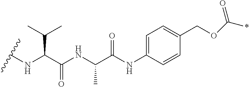 90. The method according to paragraph 89, wherein the group —X1—X2— in dipeptide, —NH—X1—X2—CO—, is -Phe-Lys-, -Val-Ala- or -Val-Cit-.