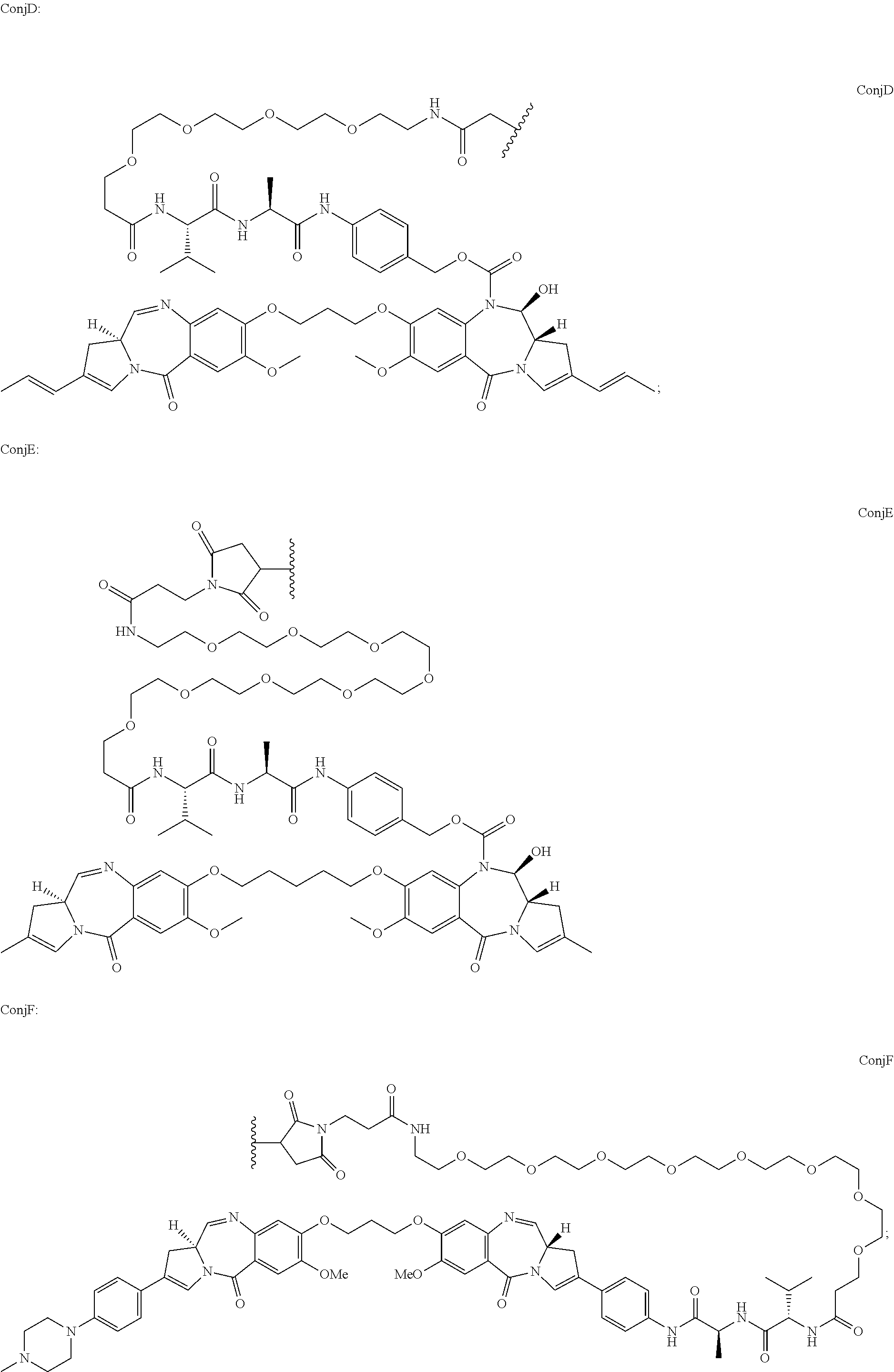 109. The method according to any one of paragraphs 1 to 108 wherein the drug loading (p) of drugs (D) to antibody (Ab) is an integer from 1 to about 8.