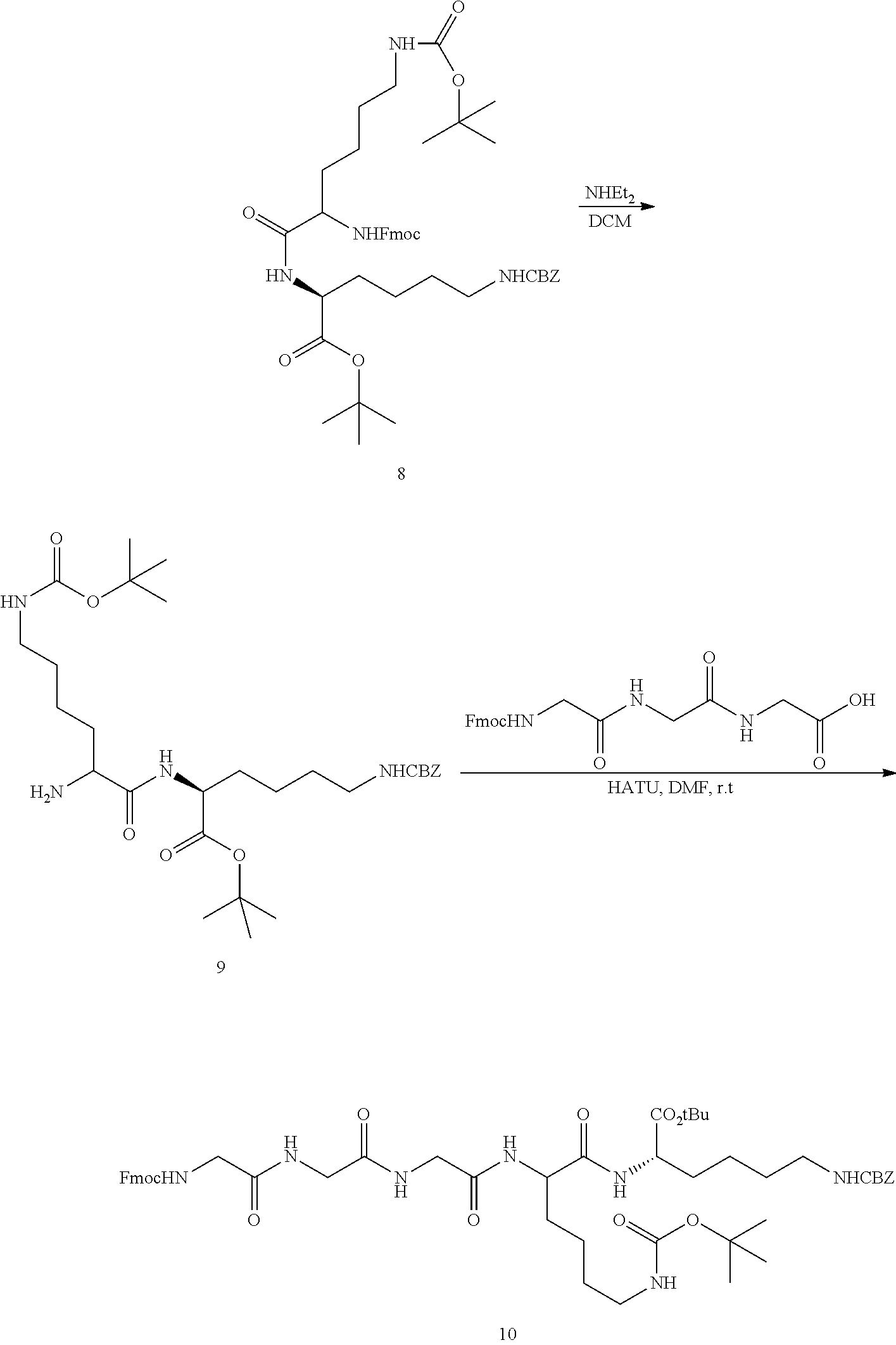 Preparation of tert-butyl-N2-(N2-(((9H-fluoren-9-yl)methoxy)carbonyl) glycylglycylglycyl-N6-(tert-butoxycarbonyl)lysyl)-N6-((benzyloxy)carbonyl)-L-lysinate (10)