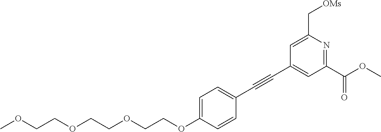 Methyl 4-((4-(bis(2-(2-(2-methoxyethoxy)ethoxy)ethyl)amino)phenyl)ethynyl)-6-(((methylsulfonyl)oxy)methyl)picolinate (I6)