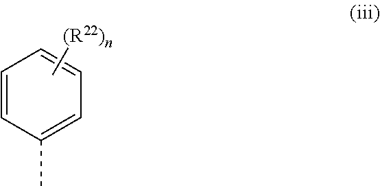 Where chemical substituents are combinations of chemical groups, the point of attachment of the substituent to the molecule is by the last chemical group recited. For example, an arylalkyl substituent is linked to the rest of the molecule through the alkyl moiety and it may be represented as follows: “aryl-alkyl-”. In the present invention, the following terms have the following meanings: