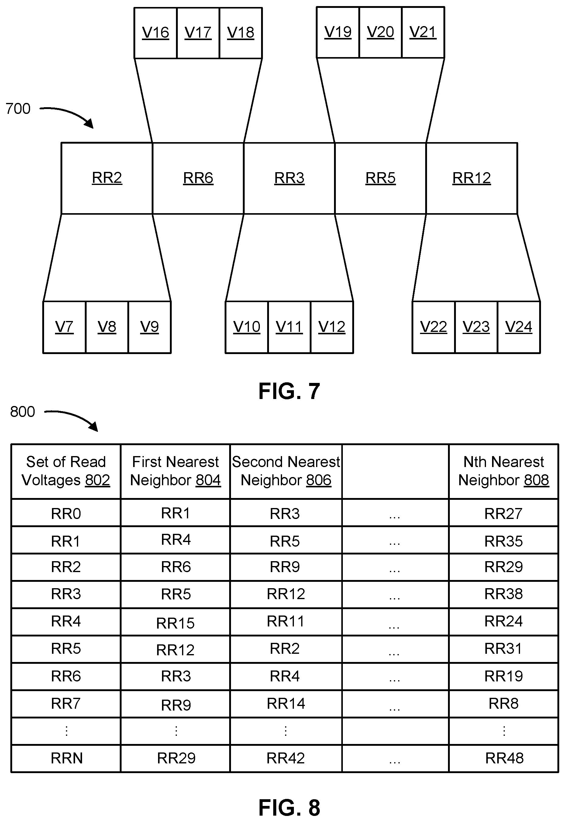 the read retry table contains several sets of read threshold voltages for reading the plurality of blocks of bulk memory that are arranged in a sequential order; the read retry neighbor table contains information pertaining to a spatial relationship between sets of read threshold voltages in read voltage space; and the computer-readable instructions upon execution by the processor configure the memory device to: