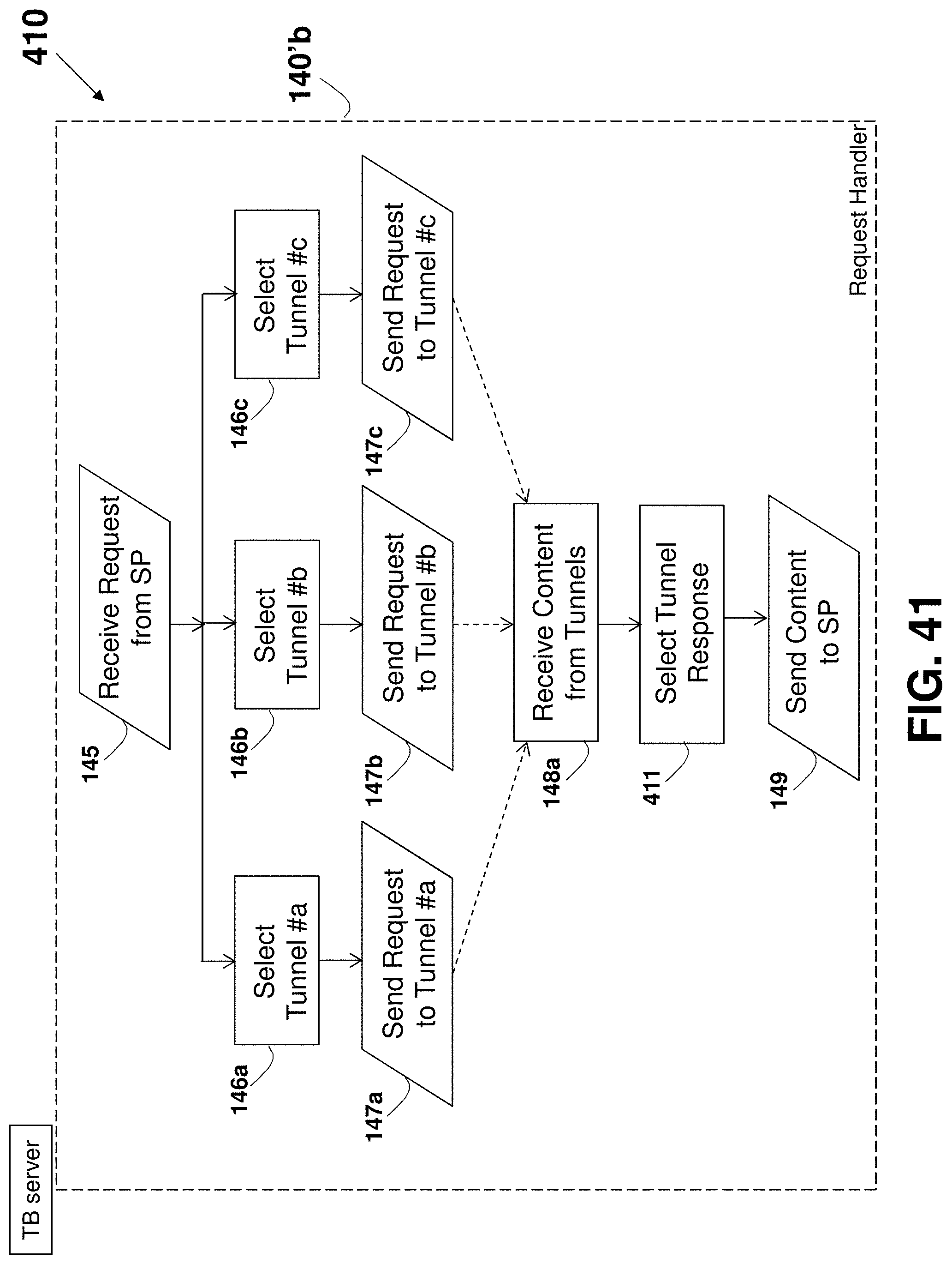 Alternatively, the requests are processed together. Further, the second request may be initiated only after the first request was completed, to be followed by a third request after the second one is completed. Each of the requests may execute part of, or whole of, the client device request related functionalities, steps, or methods, such as the flow chart 160 shown in FIG. 16, the flow chart 160a shown in FIG. 16a, the flow chart 260 shown in FIG. 26, the flow chart 390b shown in FIG. 39b, or any combination thereof. The execution of such related functionalities, steps, or methods, may be executed in parallel, or sequentially, with the other selected tunnels.