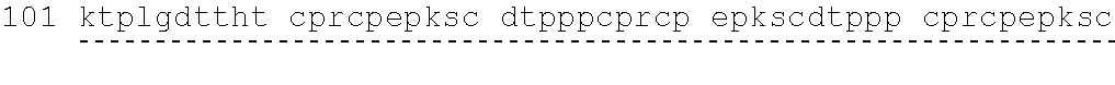 In another further embodiment hereof, the monovalent antibody further comprises the CH1 and/or CH2 regions as set forth in SEQ ID NO: 9, with the proviso that the CH2 region has been modified so that it does not comprise any acceptor sites for N-linked glycosylation. In further embodiments, the monovalent antibody according to the invention has been further modified e.g. in the CH2 and/or CH3 region, for example, to reduce the ability of the monovalent antibody to dimerize or to improve the pharmacokinetic profile, e.g. via improving the binding to FcRn. Examples of such modifications include the following substitutions (reference is here made to IgG4 residues given in SEQ ID NO:4, but the same substitutions may be made in corresponding residues in other isotypes, such as IgG1 These corresponding residues may be found by simply alignment of the sequence): in the CH3 region: T234A, L236A, L236V, F273A, F273L, Y275A, E225A, D267A, L236E, L236G, F273D, F273T, Y275E, and in the CH2 region: T118Q, M296L, M120Y, S122T, T124E, N302A, T175A, E248A, N302A. Two or more of the above mentioned substitutions made combined to obtain the combined effects. Thus, in one embodiment, the monovalent antibody comprises the CH3 region as set forth in SEQ ID NO: 4. However, in another embodiment, the monovalent antibody comprises the CH3 region as set forth in SEQ ID NO: 4, but: