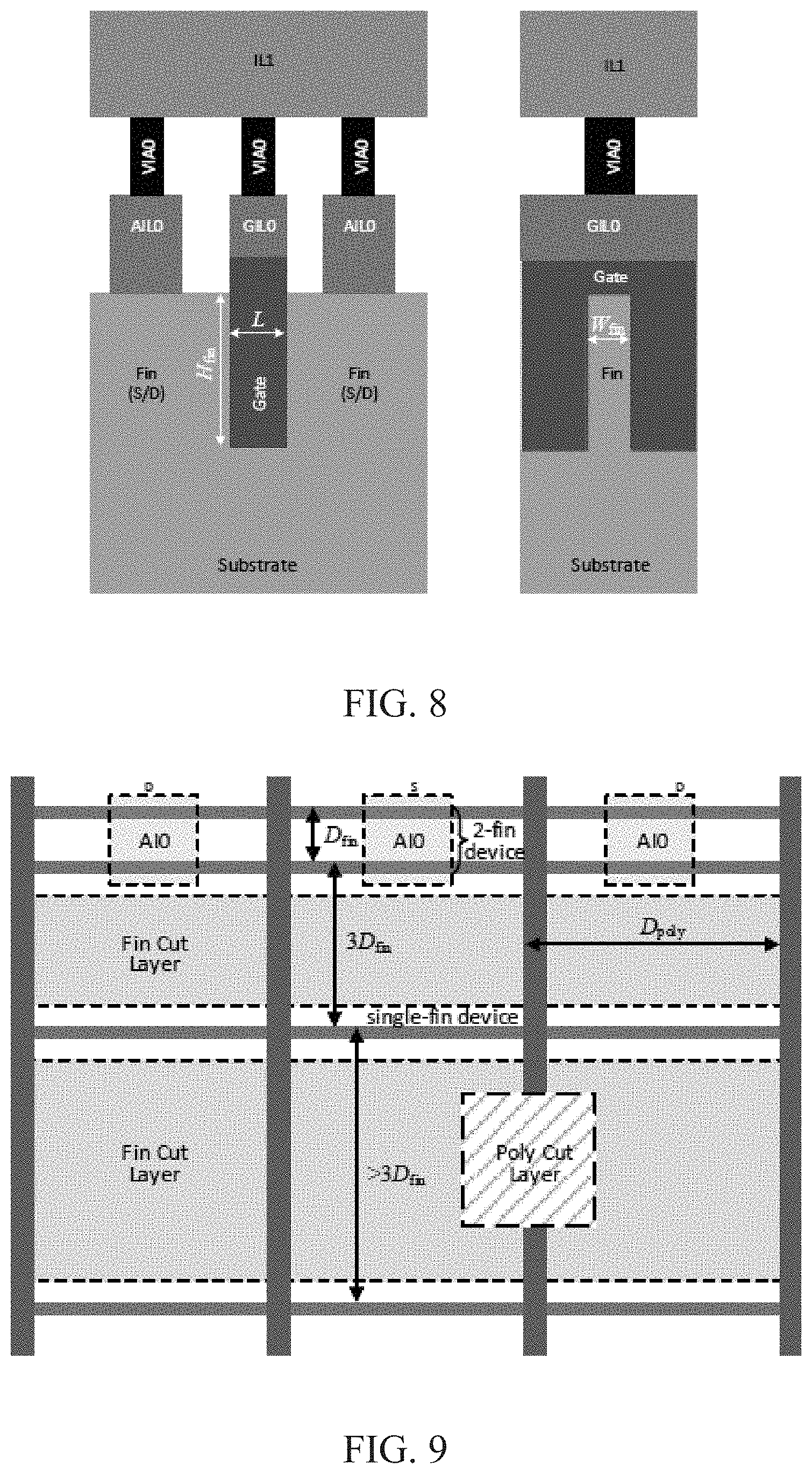 forming a plurality of semiconductor fins on a substrate; forming a plurality of gate lines across said plurality of semiconductor fins; removing portions of said semiconductor fins and gate lines to form a plurality of FinFET transistors according to a specified layout, said layout comprising: