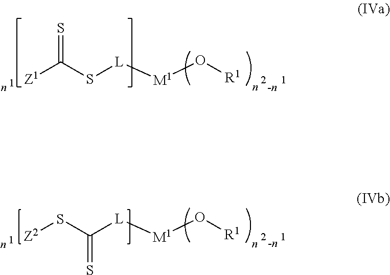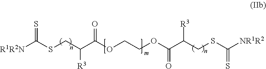 In some embodiments, the dithioester compounds may comprise molecules of the Formula (IIb): wherein