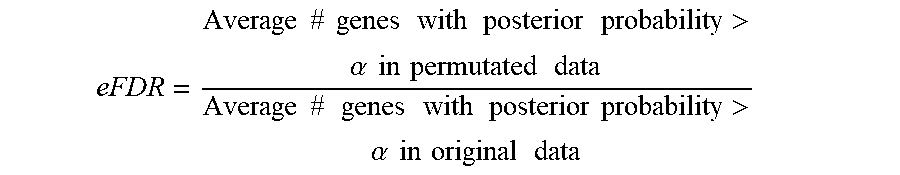 eFDR=(Averaged No. of genes with posterior probabilities >alpha in permuted data)/(Averaged No. of genes with posterior probabilities >alpha in original data).