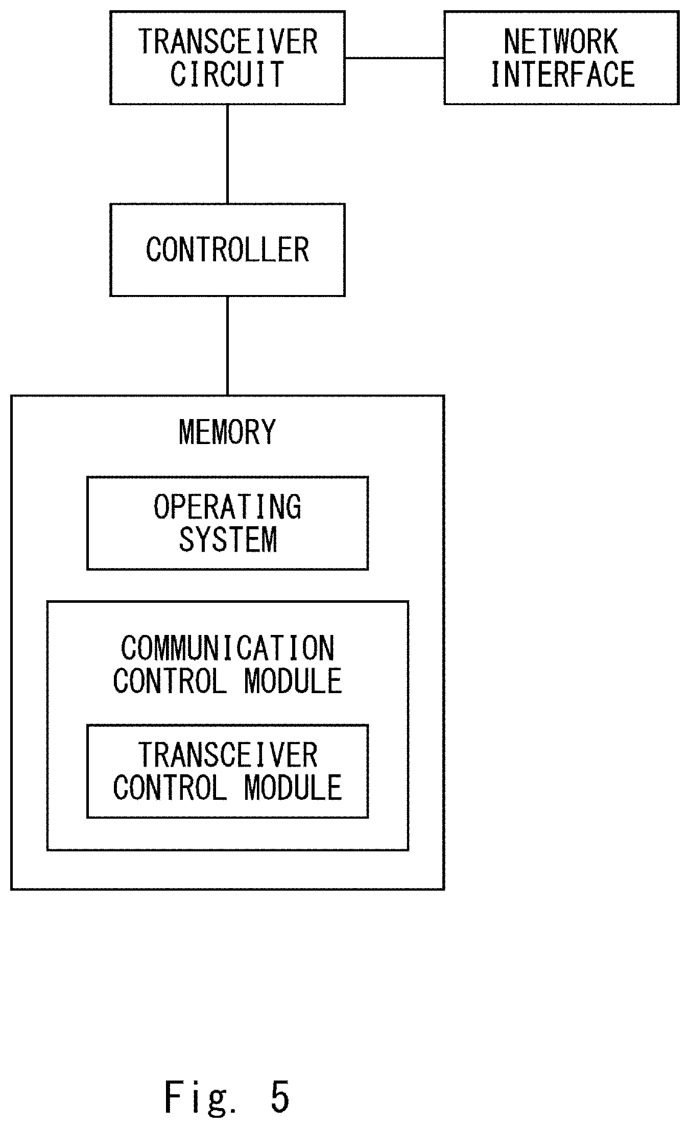 FIG. 5 is a block diagram illustrating the main components of the AMF. The AMF is included in the 5GC. As shown, the AMF includes a transceiver circuit which is operable to transmit signals to and to receive signals from other nodes (including the UE) via a network interface. A controller controls the operation of the AMF in accordance with software stored in a memory. For example, the controller may be realized by Central Processing Unit (CPU). Software may be pre-installed in the memory and/or may be downloaded via the telecommunication network or from a removable data storage device (RMD), for example. The software includes, among other things, an operating system and a communications control module having at least a transceiver control module.