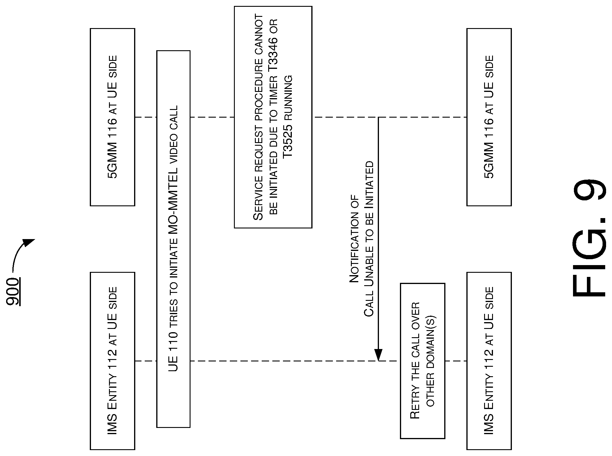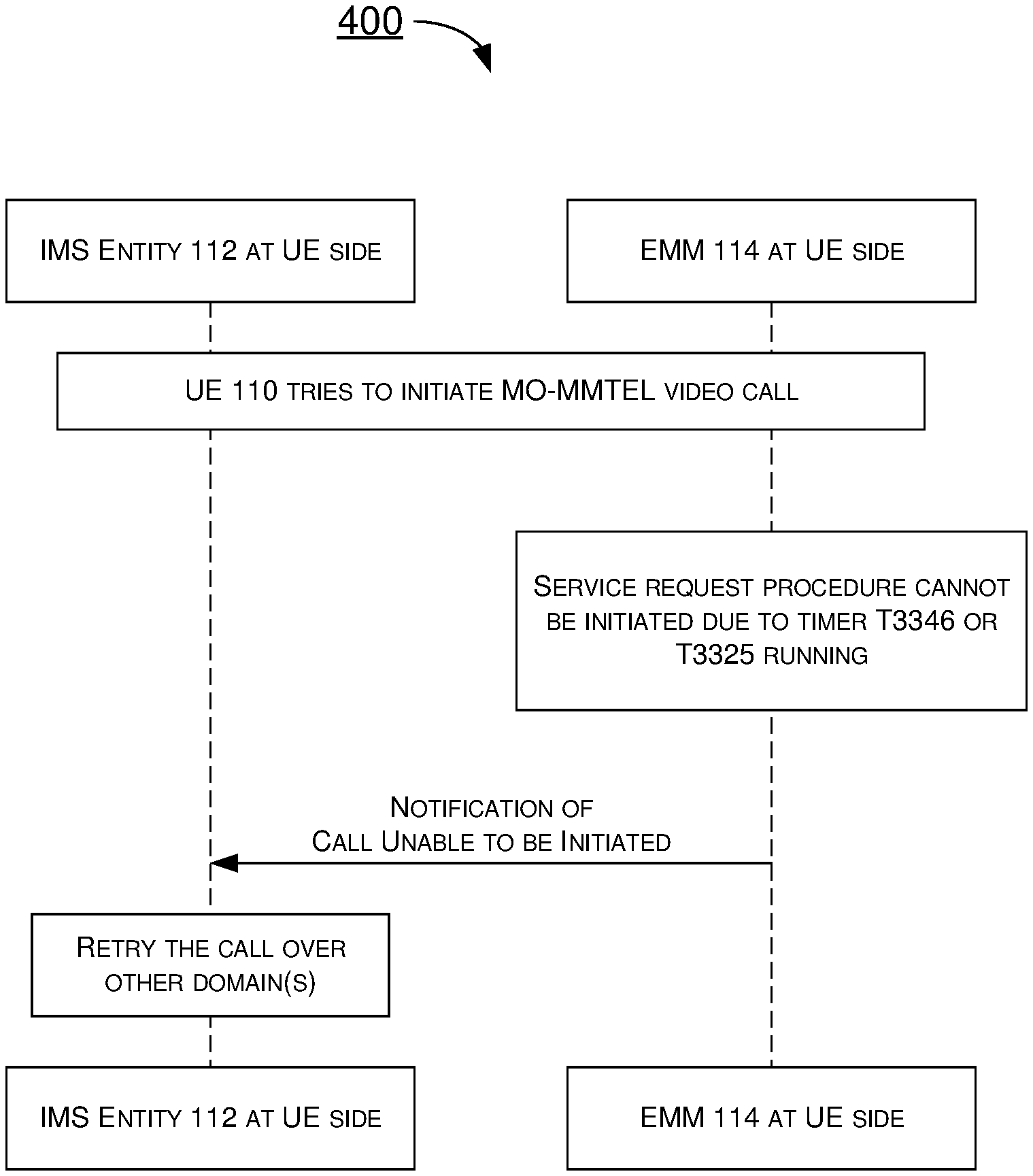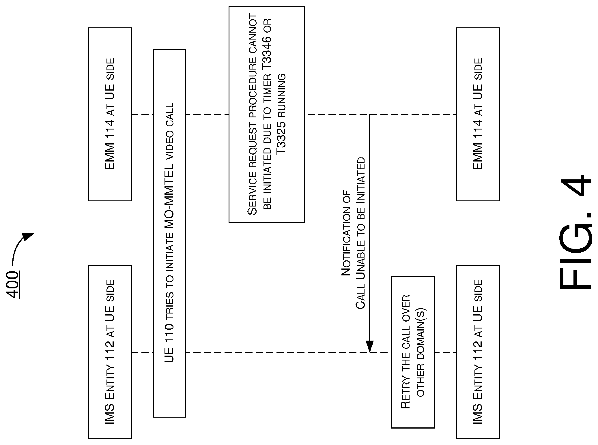 identifying a need to initiate a mobile originated multimedia telephony (MO-MMTEL) video call over a first domain; determining that there is a condition that prevents initiating the MO-MMTEL video call over the first domain; and initiating, via the transceiver, the MO-MMTEL video call over a second domain different than the first domain responsive to the determining. 18. The apparatus of 19. The apparatus of the EMM function determining that a service request procedure cannot be initiated to initiate the MO-MMTEL video call over the first domain due to a T3346 timer or a T3325 timer running; or the EMM function determining that the apparatus is in an EMM-REGISTERED.ATTEMPTING-TO-UPDATE state and that the T3346 timer is running; or the EMM function performing: