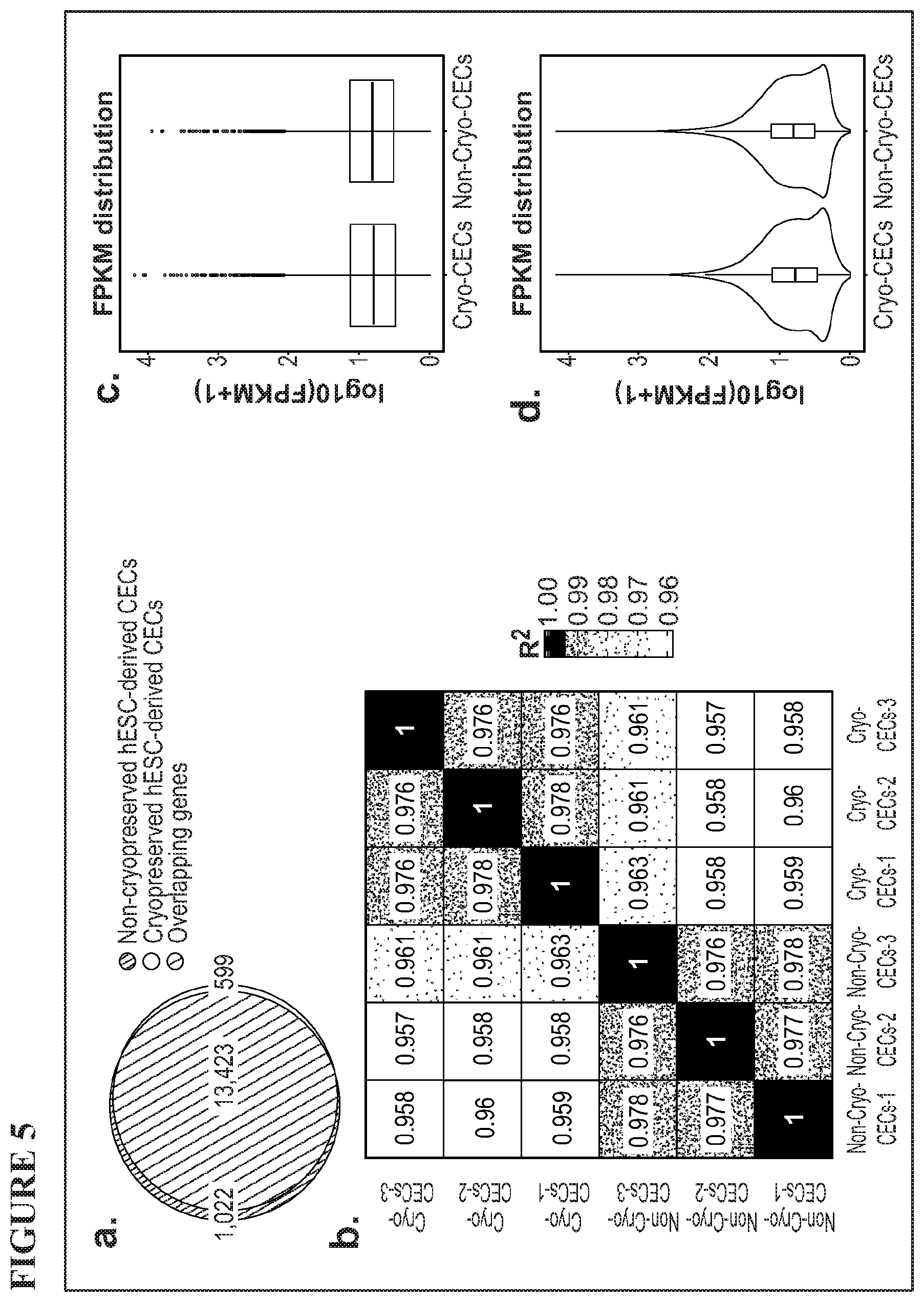 This application claims benefits of priority to U.S. Provisional Application No. 62/778,862 filed Dec. 12, 2018, the entire contents of which are incorporated herein by reference. Embodiments are directed to the generation and cryopreservation of clinical-grade corneal endothelial cells from the peripheral blood mononuclear cell (PBMC)-originated, induced pluripotent stem cells (iPSCs) and human embryonic stem cells (hESCs) and uses thereof. The cornea is the outermost, transparent layer of the eye. It is composed of five layers: epithelium, Bowman's membrane, stroma, Descemets membrane, and endothelium.1The corneal endothelium (CE), is a monolayer of hexagonal cells which is critical in maintaining corneal clarity by mediating hydration through barrier and pump functions.2The CE cell density is approximately 2500 cells/mm2in adult CE.3Corneal endothelial dystrophies and surgical trauma are the major factors that contribute to loss of corneal endothelial cells (CECs) and a decrease in CE cell density. The physiological functioning of the CE is undermined below 500 cells/mm2cell density resulting in corneal edema and loss of vision.3 Fuchs endothelial corneal dystrophy (FECD) is the leading cause of corneal transplantation performed both in the US and worldwide each year.4, 5Although keratoplasty has been successful at visual rehabilitation, graft rejection and lack of suitable donor tissue for transplantation continue to be impediments to reduce worldwide corneal blindness. Embodiments of the invention are directed, inter alia to the generation and cryopreservation of the peripheral blood mononuclear cell (PBMC)-originated, induced pluripotent stem cell (iPSC)- and human embryonic stem cell (hESC)-derived clinical-grade corneal endothelial cells (CECs) and their uses thereof. In certain embodiments, a method of producing corneal endothelial cells (CECs) comprises isolating peripheral blood mononuclear cells (PBMCs) from a biological sample, reprograming the PBMCs to induce pluripotency expressing the pluripotent markers NANOG, OCT4, SOX2, SSEA4, TRA-1-60 and differentiation of the pluripotent stem cells including induced pluripotent stem cells (iPSCs) and human embryonic stem cells (hESCs) to produce corneal endothelial cells (CECs). In certain embodiments, the step of culturing the cells comprises culturing the iPSCs and hESCs on human recombinant protein, for example, Vitronectin (VTN-N) using Essential 8 medium. In certain embodiments, the differentiating cells (iPSCs and hESCs) express neural crest markers, NGFR, SOX10 or combinations thereof. In certain embodiments, the corneal endothelium (CE)-associated markers comprise AQP1, COL4A1, COL4A3, COL8A1, COL8A2, FOXC1, SLC16A3 or combinations thereof. In certain embodiments, the matured CECs are identified by markers comprising AQP1, COL4A3, COL8A2, SLC16A3 or combinations thereof. In certain embodiments, a method of preventing or treating corneal associated diseases or disorders, comprising producing corneal endothelial cells (CECs) from human embryonic stem cells (hESCs) and peripheral blood mononuclear cell (PBMC)-originated, induced pluripotent stem cells (iPSCs) and transplanting the CECs in the cornea of a subject in need of some treatment. In certain embodiments, corneal disease or disorder comprises: inherited diseases or disorders, infection, wounds, inflammatory diseases, autoimmune diseases, dry eye, dystrophies or combinations thereof. In certain embodiments, corneal disease or disorder comprises: Fuchs endothelial corneal dystrophy (FECD), lattice dystrophy, keratoconus, herpes virus infections, varicella-zoster virus infections, iridocorneal endothelial syndrome (ICE), pterygium, corneal ulcers, corneal abrasion, or bullous keratopathy. In certain embodiments, a reprogramming method for producing induced pluripotent stem cells (iPSCs) comprises a) infection of cells by reprogramming viral particles expressing c-MYC, KLF4, OCT3/4, SOX2 or combinations thereof; b) culturing infected cells in a medium supporting their expansion; c) isolating iPSC colonies. In certain embodiments, iPSC colonies expressing pluripotent markers are selected and expanded. In certain embodiments, the pluripotent markers comprise NANOG, OCT4, SOX2, SSEA4, TRA-1-60 or combinations thereof. In certain embodiments, the cells expressing pluripotent markers are cultured on human recombinant Vitronectin (VTN-N) using Essential 8 medium. In certain embodiments, the iPSCs and human embryonic stem cells (hESCs) are confirmed by means comprising gene expression of pluripotent markers, protein expression of pluripotent markers, or combinations thereof. In certain embodiments, the present invention further provides a method for stem cell therapy, which comprises the step of transplanting cell, wherein said cell is obtained by inducing differentiation of human embryonic stem cells (hESCs) and/or induced pluripotent stem cells (iPSCs) obtained by the aforementioned method using a somatic cell isolated and collected from a patient, into said patient. iPSCs prepared from somatic cells derived from healthy humans can be stored in an iPSC bank as a library of iPSCs, and one kind or more kinds of the iPSCs in the library can be used for preparation of somatic cells, tissues, or organs that are free of rejection by a patient to be subjected to stem cell therapy. In certain embodiments, the present invention further provides a method for evaluating a physiological function or toxicity of a compound, a medicament, a poison or the like by using various cells obtained by inducing differentiation of induced pluripotent stem cells (iPSCs) obtained by the aforementioned method. In certain embodiments, a composition comprises cryopreserved corneal endothelial cells (CECs) produced from human embryonic stem cells (hESCs) and peripheral blood mononuclear cell (PBMC)-originated induced pluripotent stem cells (iPSCs). In certain embodiments, cryopreserved conical endothelial cell