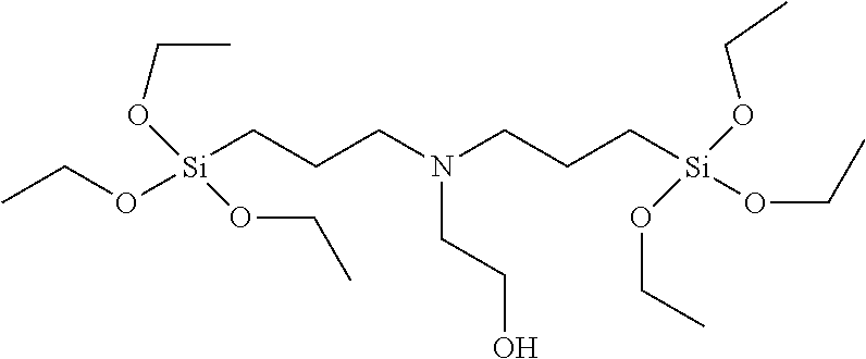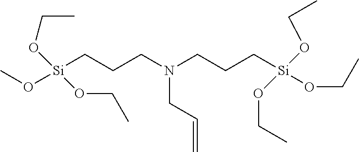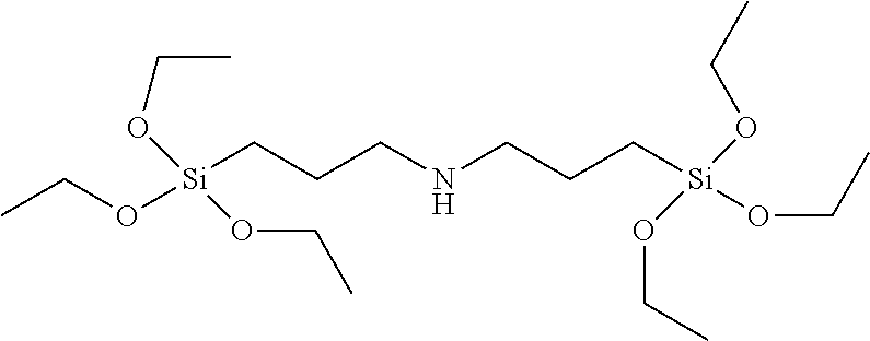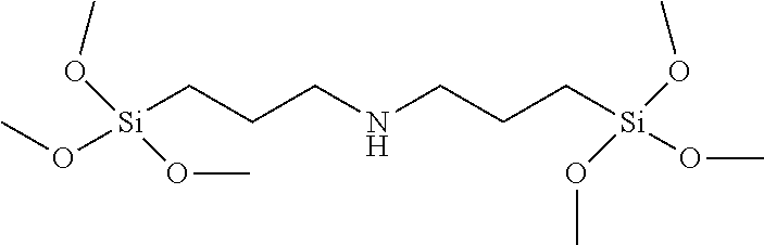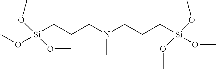 (R5O)c(R6)dSi-(A)e-[NR7-(A′)]f-[O-(A″)]g-[NR8-(A′″)]h-Si(R6′)d′(OR5′)c′  (II),