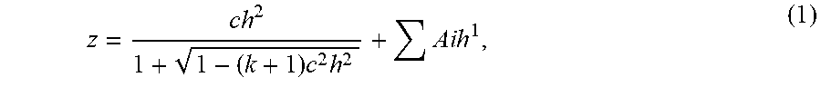 z12=(CUX)x2+(CUY)y21+1-(1+KX)(CUX)2x2-(1+KY)(CUY)2y2+AR{(1-AP)x2+(1+AP)y2}2+BR{(1-BP)x2+(1+BP)y2}3+CR{(1-CP)x2+(1+CP)y2}4+DR{(1-DP)x2+(1+DP)y2}5+ER{(1-EP)x2+(1+EP)y2}6+FR{(1-FP)x2+(1+FP)y2}7+GR{(1-GP)x2+(1+GP)y2}8+HR{(1-HP)x2+(1+HP)y2}9+JR{(1-JP)x2+(1+JP)y2}10,(2)