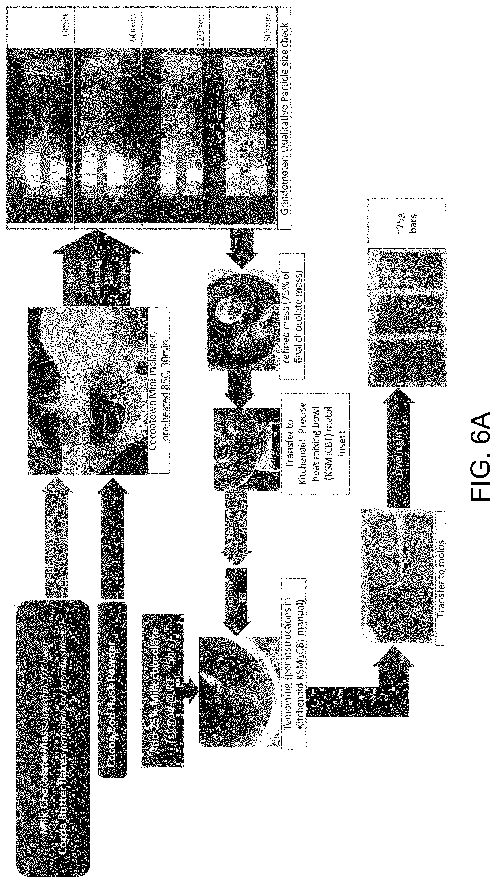Energy, kJ 2205.2 2052.4 2052.4 Energy, kcal 526.5 490.6 490.6 protein 6.3 6.1 6.1 carbohydrate 61.1 61.3 61.3 Sugars 58 51.5 51.5 Added sugars 46.1 40 40 fat 29.1 29.3 29.3 fibre 1.7 6.1 6.1 Example 5—Incorporating CPH Powder of Example 1 Milled to Various Particle Sizes into Milk Chocolate at 10 wt. %
