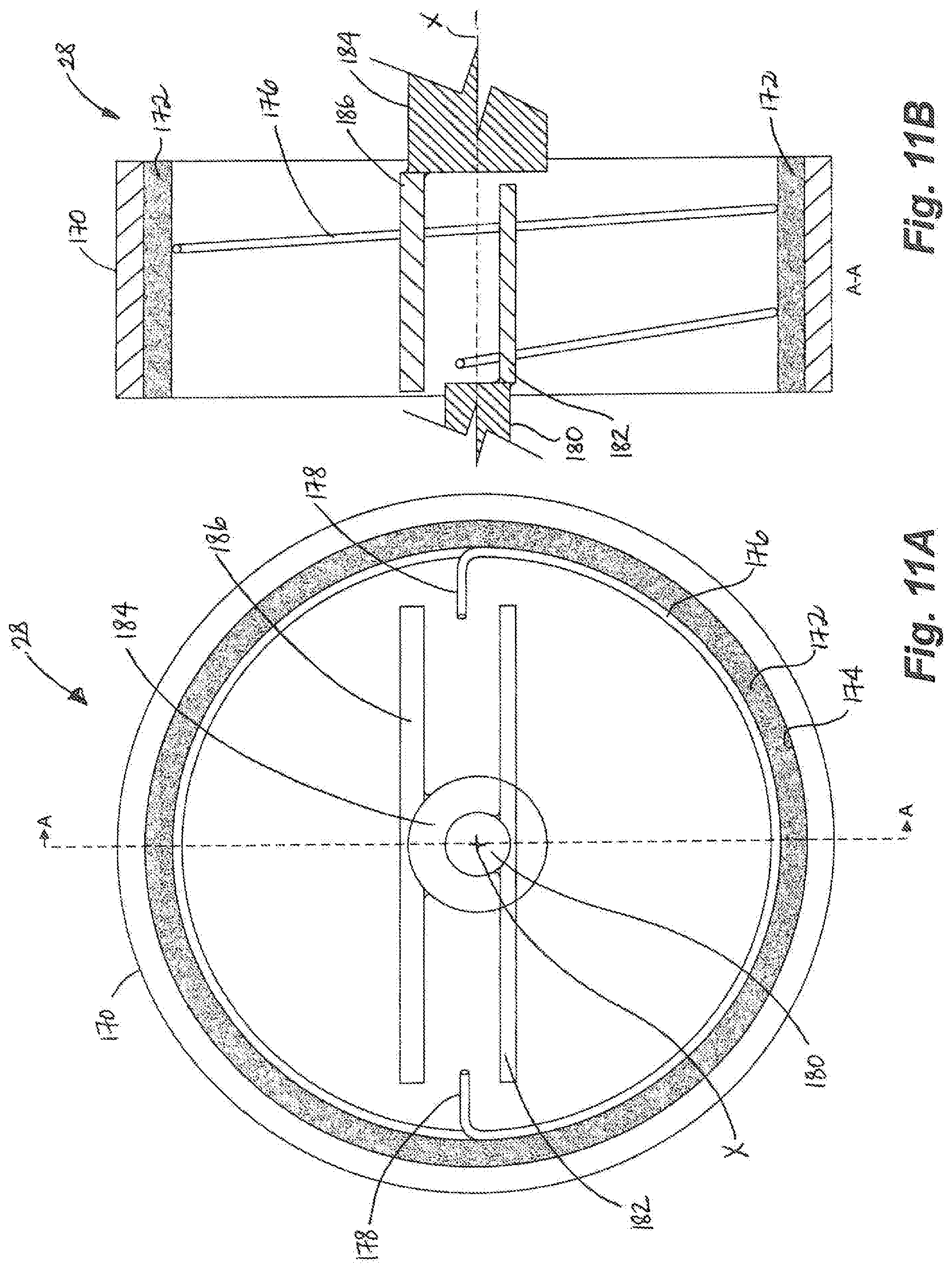 As shown in FIGS. 11A and 11B, the clutch 28 comprises a tubular housing 170 having an axis X and a layer of friction material 172, extending circumferentially about an inside surface 174 thereof. A clutch spring 176 is fit circumferentially inside the housing 170, overlying the friction material 172 and forced thereagainst. The clutch spring 176 comprises one or more winds of the spring material. In an embodiment, the clutch spring 176 comprises about 2.5 winds of the spring material. Opposing ends 178 of the spring 176 are bent to extend radially inwardly toward a center of the housing 170. Behaviour of the internal clutch spring 176 is similar to an external band brake and can be predicted by a natural log function.