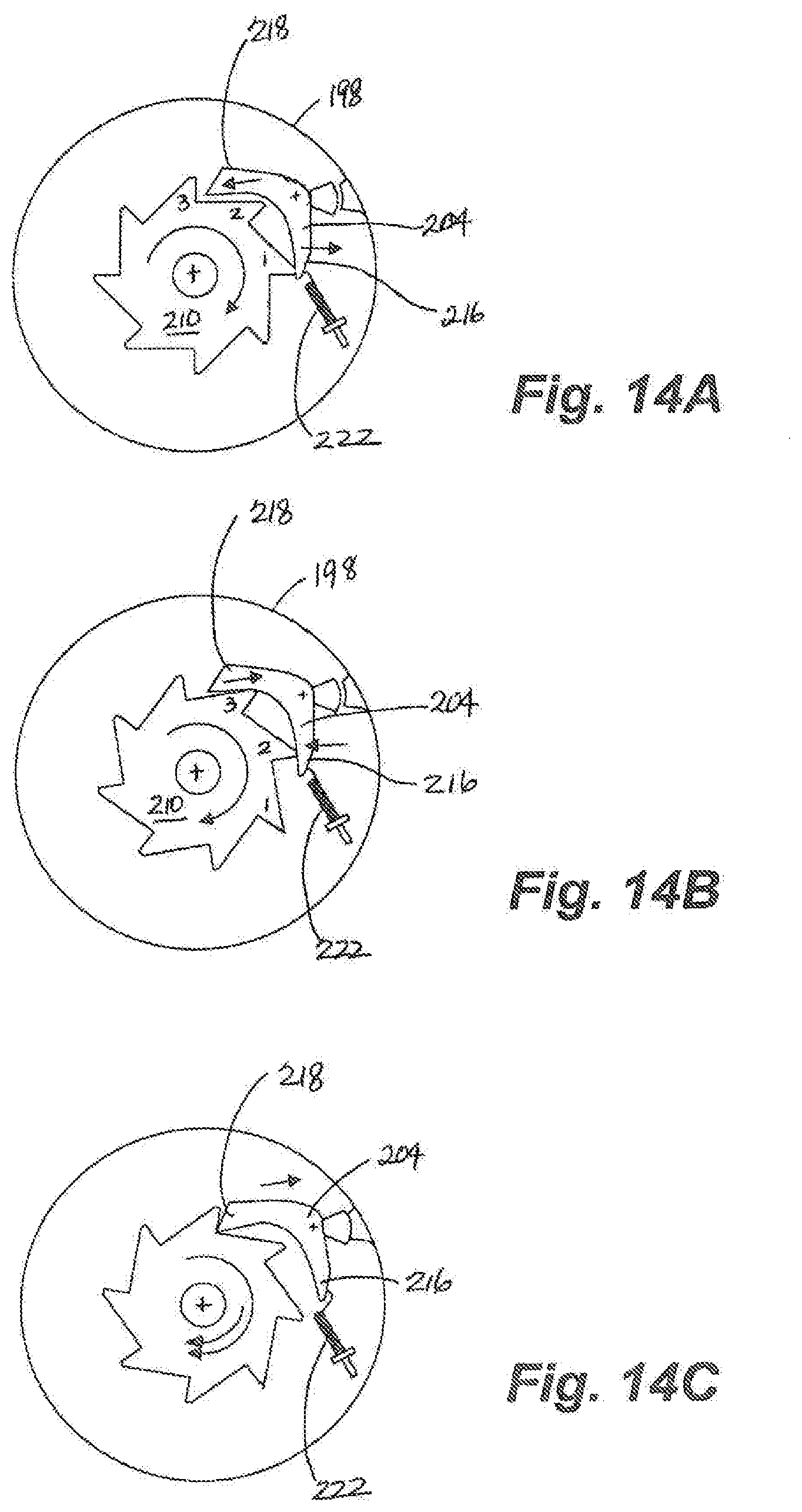 A shown in FIG. 13A, brake band spring 228 is connected to the tension end 230 of the band 220. As tension is applied, the spring 228 compresses. Adjustment of the spring 228 sets an appropriate braking torque.