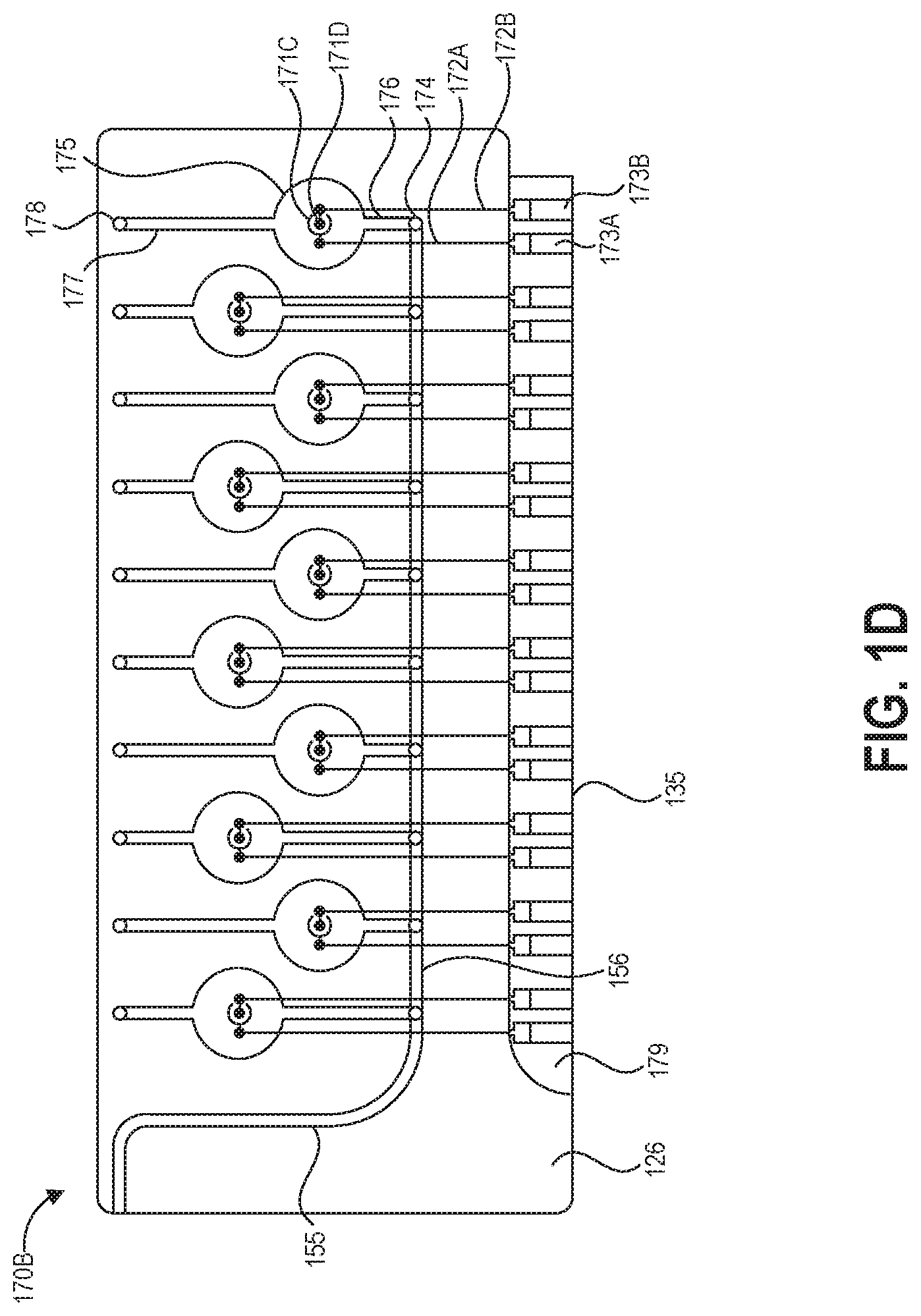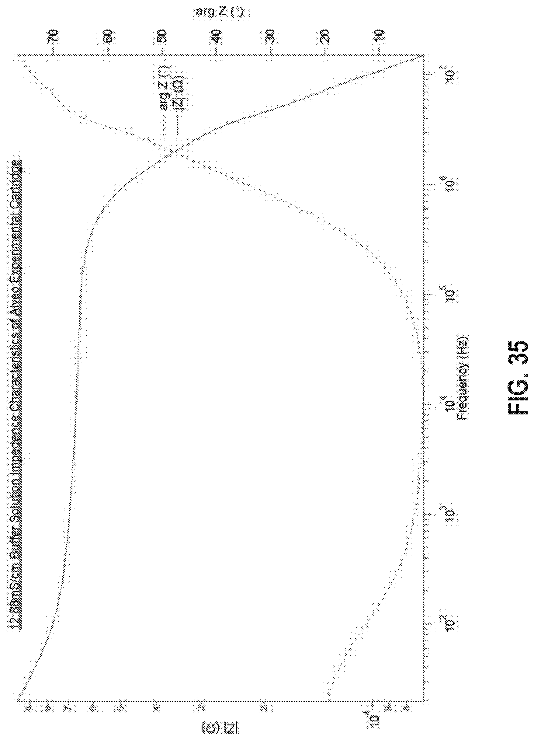 Isothermal amplification 0.1 1x (contains 2 mM 40 buffer (10x; NEB) MgSO4) MgSO4(100 mM; NEB) 0.06 6 mM (8 mM Total) 24 dNTP mix (10 mM each; 0.14 1.4 mM each 56 NEB) 10x H. inf. primer mix 0.1 1x (1.6 μM FIP/BIP, 40 0.2 μM F3/B3, 0.4 mM LoopF/B Bst 2.0 WarmStart 0.04 320 U/L 16 polymerase (8000 U/L; NEB) H. inf. DNA Sample (1 0.04 16 Mc/uL) Ultra Pure Water 0.52 208 Total 400 Tris-HCl 2 20 157.6 31.52 KCl 50 500 74.55 372.75 MgSO4 2 20 246.48 49.30 Tween 20 0.10% 1% 100% 0.1 mL DI Water 9.9 mL Example 8—Impedance Characteristics of a Fluidics Cartridge