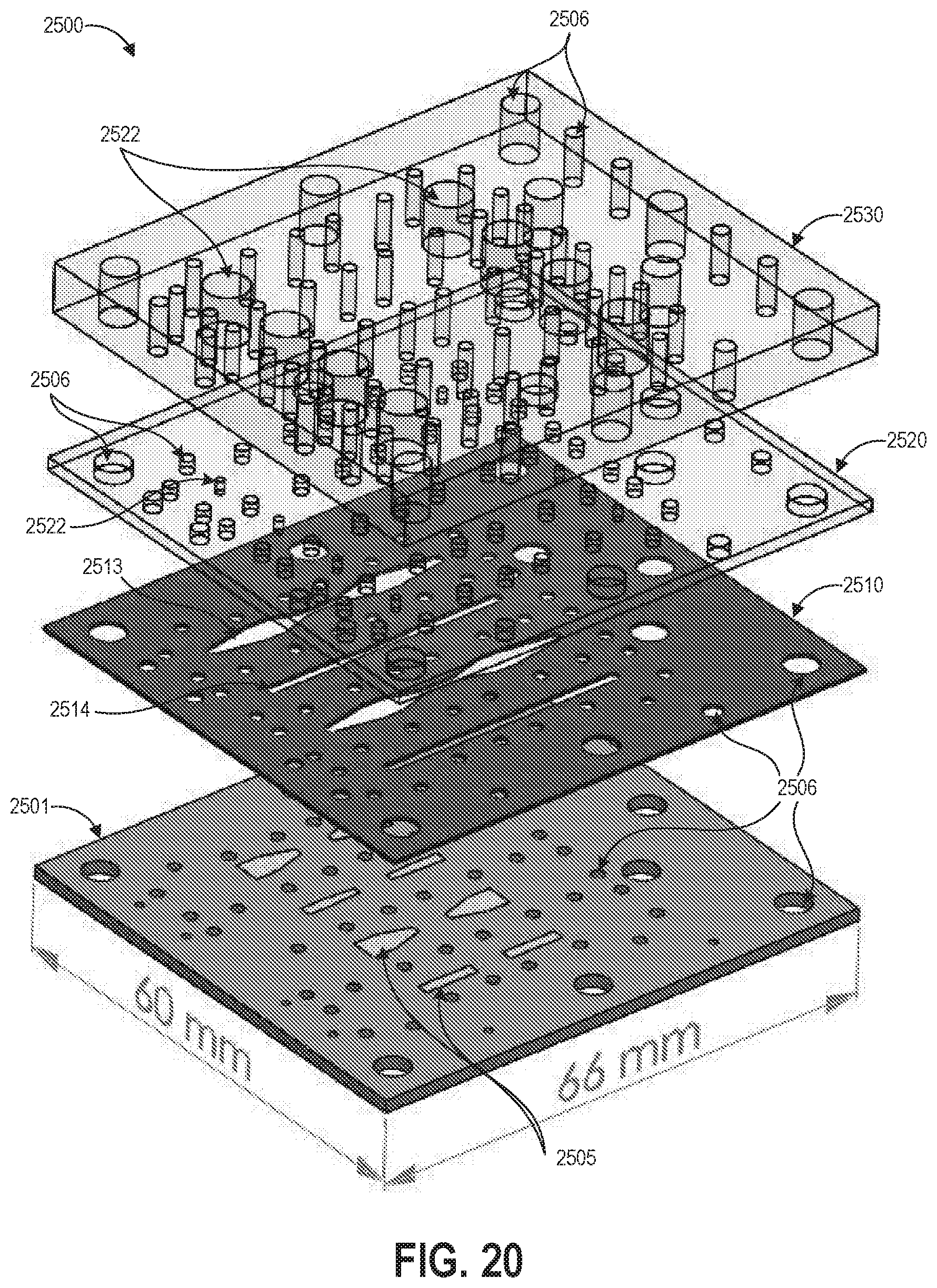 21 LAMP H Inf ACTTCTTTACCAAAGGCATCATTT Primer 180430_FIP AATTTGCGTTTGTTGAATTCTGGG 22 LAMP H Inf TTTTACTGATGATATGGGTACATCT Primer 180430_BIP GGGCTCGAAGAATGAGAAGTTTTGT 23 LAMP H Inf TGGTACGCCAATACATTCAA Primer F3_180430 24 LAMP H Inf CGCCATAACTTCATCTTAGCACC Primer LB_180430 10 LAMP (Table Primer H Inf B3 CGTATGGGGTTTGTGCA 9) Example 18—Two-Pot RPA and Another Amplification Such as LAMP on a Cartridge