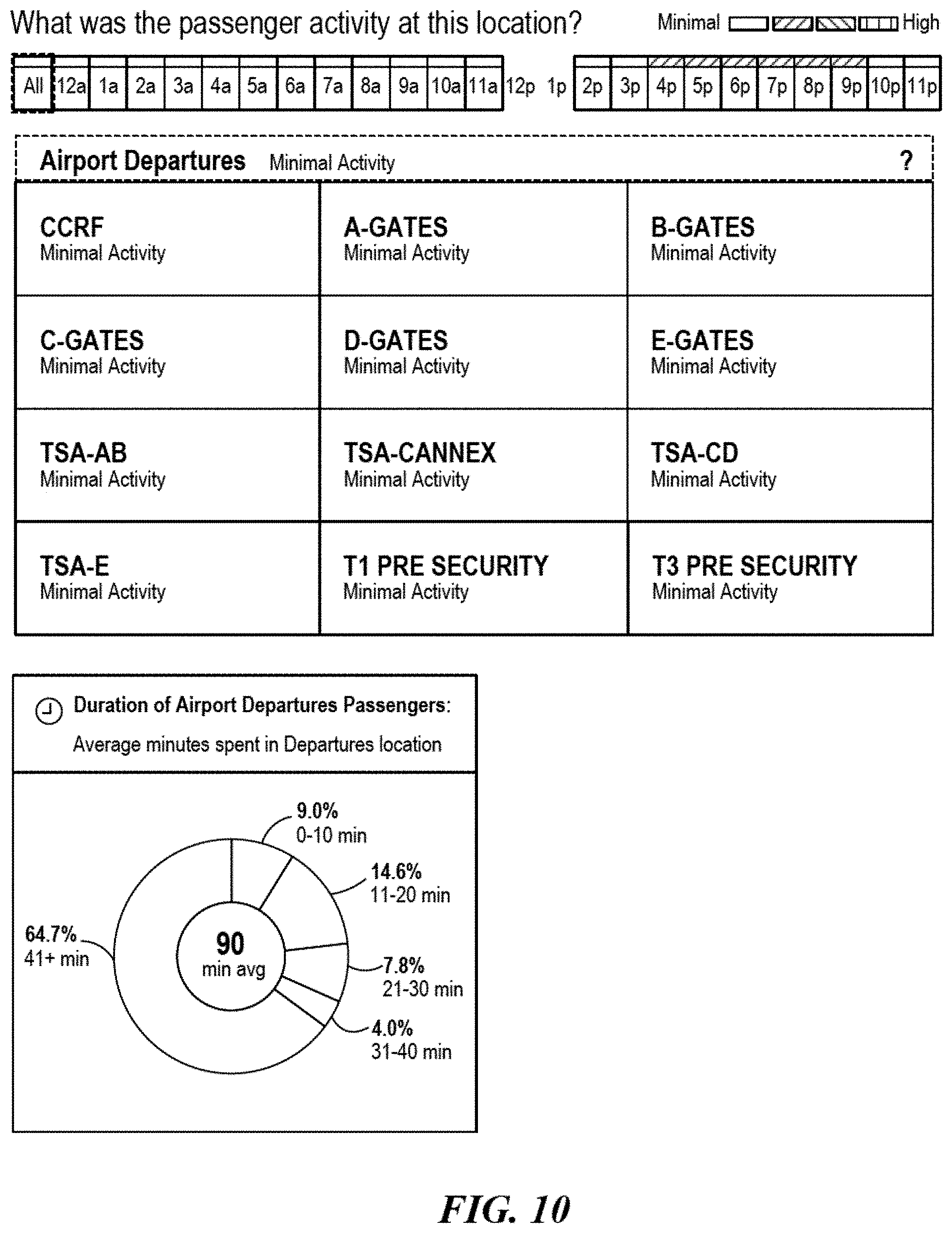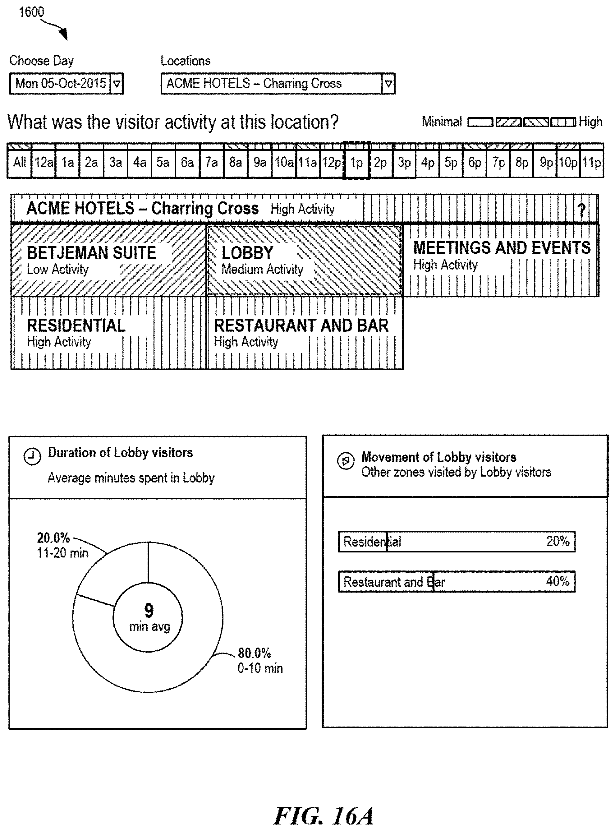 Visitor Loyalty Behavior Also included in interface 2200 is region 2210, which indicates visitor loyalty behavior. In particular, region 2210 reports on the percentage of customers who are new (2212), re-engaged (2214), or recent (2216). In addition to the current breakdown of visitor types (49.2% new; 19.8% re-engaged; 29.9% recent), a comparison between the current breakdown and a previous time period (e.g., a previous event) is included (i.e., −3.6%; −0.5%; 3.2%). A new visitor is one who has not been seen previously (e.g., at the reporting location, or at any location, as applicable). A visitor will remain classified as new until he returns to a previously visited location. A re-engaged visitor is one who has visited the same location at least twice, and whose last visit to that location was more than 30 days ago. In various embodiments, 30 days is used as a default threshold value. The value is customizable. For example, certain types of businesses (e.g., oil change facilities) may choose to use a longer duration (e.g. 60 or 90 days) to better align with their natural customer cycle, whereas other businesses (e.g., coffee shops) may choose to use a shorter duration (e.g., 14 days). A recent visitor is one has visited the same location at least twice, and whose previous visit was within the last 30 days. An alternate embodiment of an interface depicting loyalty information is shown in The following are examples of scenarios in which a user of platform 170 is interested in the ability to differentiate between kinds of visitor loyalty behavior: