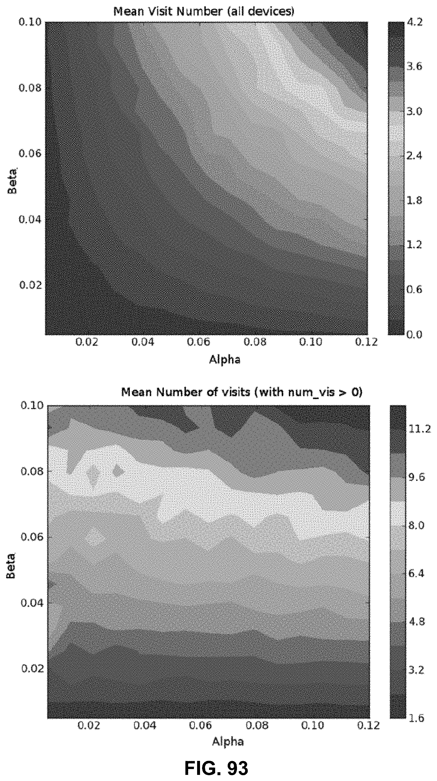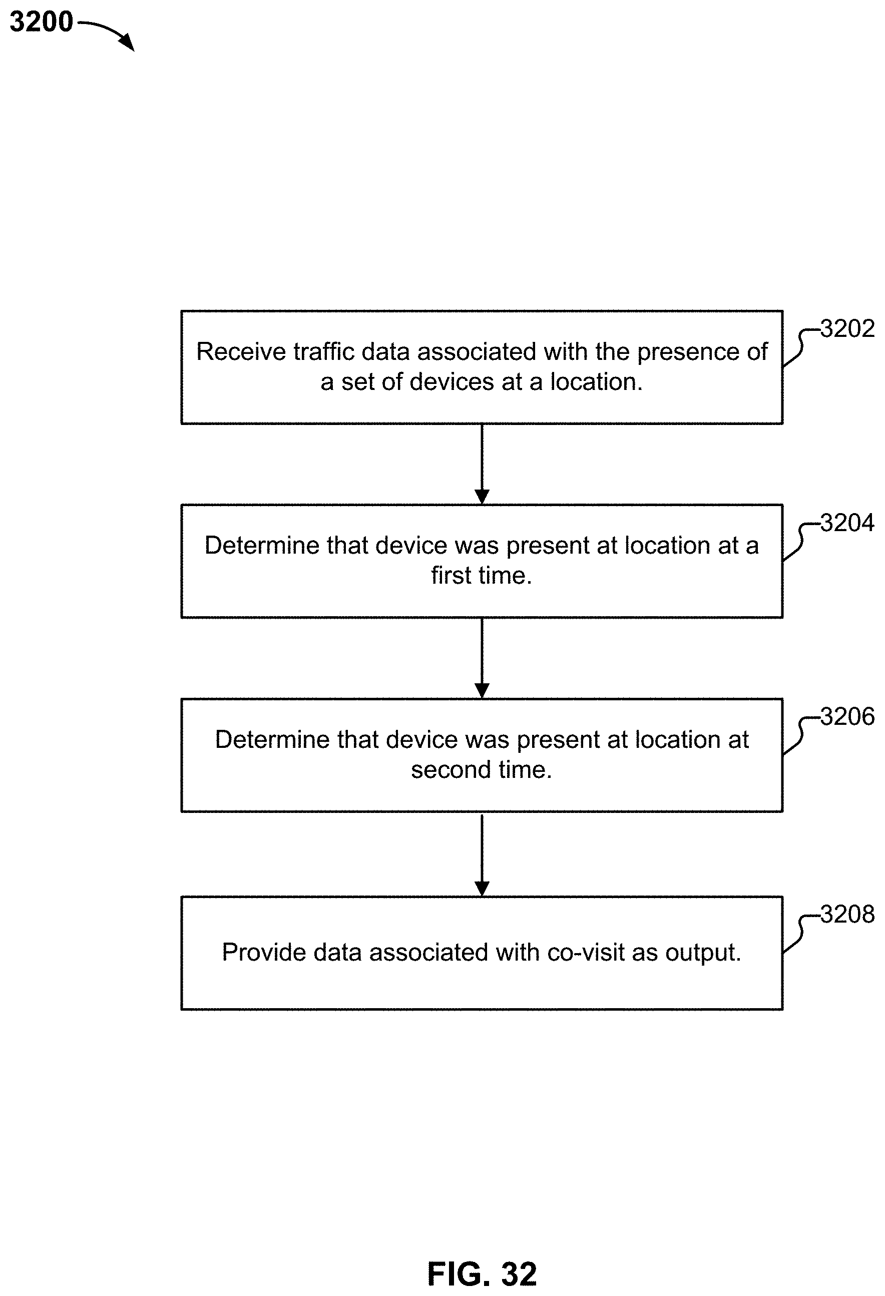 A crowd-blending scheme combined with random sampling will impose a minimum uncertainty for privacy with almost no degradation to signal quality. Cohort tracking is an example of one use case with a steeper trade-off between privacy and utility. Certain cohorts based on demographic info, age for instance, or a specific behavior that can occur at any time, commuter tagging, pose little issue. However, any cohort analysis that seeks to time select users based on a specific day or week, or a specific combination of locations (ACME Coffee and Beta Shoes for instance) may pose issues. In general, the resultant information that can be calculated, demos or behavior, is robust under data compression because the specific data of visit or zone of visit is not an issue. This is less the case with cohort tracking around specific marketing campaigns or initiatives at individual stores. A blender and sampler can be written to quantify the loss of data accuracy for certain level of privacy enhancement. For example, two spans can be taken, ACME and Beta companies for instance, and a few months of data can be duplicated with added privacy built in. The metrics listed above can be compared in both cases and deviations quantified. A process based on genetic evolution algorithms can be used to fuzzy the data. The modified generation of the corpus can include the following. A few fields deemed to add privacy but not degrade data utility can be targeted for mutation; an example could be the exact date or hour of a visit. This piece of information is potentially superfluous to the ability to report useful information. In some embodiments, the modified generation samples its new value for these fields from a list of neighboring devices. The sampling can be equally weighted for any device sufficiently close in behavior space, or it can be a weighted random sampling of any device in the corpus, weighted by the distance in behavior space. Once a quantitative measure of utility lost for privacy gained exists, an informed discussion can be made about which metrics and use cases to prioritize. This allows for control of data privacy. In some embodiments, the received traffic data is used to determine visitor activity. For example, key performance indicators or various measures are determined based on the received traffic data. One example of a key performance indicator is average shop time, which is determined by determining an average amount of time that a device spends at the location (e.g., based on received timestamp information). Another example of a key performance indicator that can be determined is a duration that a device has spent at the location. The duration can also be determined based on received timestamps. In some embodiments, a duration of time that the device spent at a location across a combination of span, zone, and date can be determined for a device by aggregating timestamps over a time period. Another example of a key performance indicator is store front potential. In some embodiments, determining store front potential includes determining a number of users with WiFi enabled devices detected within and/or without the location. In some embodiments, store front conversion can also be determined using storefront potential, which is a proportion of users detected within and without of the location that entered the location. Another example of a key performance indicator is bounce rate. In some embodiments, bounce rate is the percentage or proportion of users with Wi-Fi enabled devices that spent less than threshold amount of time at the location. Another example of calculating bounce rate is described in further detail below in conjunction with Another example of a key performance indicator that can be determined is new shoppers. A metric associated with new shoppers can be determined by determining a percentage of visitors to the location who have not been previously detected by a sensor at the location. Another example of a key performance metric is repeat visitors. In some embodiments, determining a number of repeat of visitors (e.g., repeat shoppers) includes dividing the number of repeat visitors by a total number of visitors (e.g., within a certain time period). Another example of data that can be determined using the received data include loyalty and engagement (e.g., dwell) scores for the location. In some embodiments, the traffic data received at 9402 can be used to determine a repeat rate (also referred to as “visit frequency”). In some embodiments, the repeat rate is based on the loyalty of a store's population during a time period (as well as a selection of cohort devices in the time window). In some embodiments, a measure of the loyalty of the location's population can be determined. The loyalty measure can be determined based on an accurate measure of absent devices (e.g., a number of devices which should have appeared during a time window, but failed to do so). These absent devices can be used as a baseline against which the number of repeat devices (determined using the techniques described above) in the time window are compared. Repeat rate can be determined based on a model of visitor repeat behavior. In some embodiments, the repeat rate is determined based on a probability that a loyal visitor will return to a store and the spread in repeat probability (e.g., distribution of delay between repeat visits). The repeat rate (and spread in distribution of delay between repeat visits) for different cohorts (within a time window) of devices can then be modeled. Growth of devices along various dimensions (e.g., segmented based on dimension such as age, gender, income) can be determined. In some embodiments, the modeling can be used to predict the number of repeat visitors expected during a time window. The traffic data received at 9552 can also be used to determine visit recency. In addition to extracting the population's visit rate, how the repeat visit rate changes with time can al