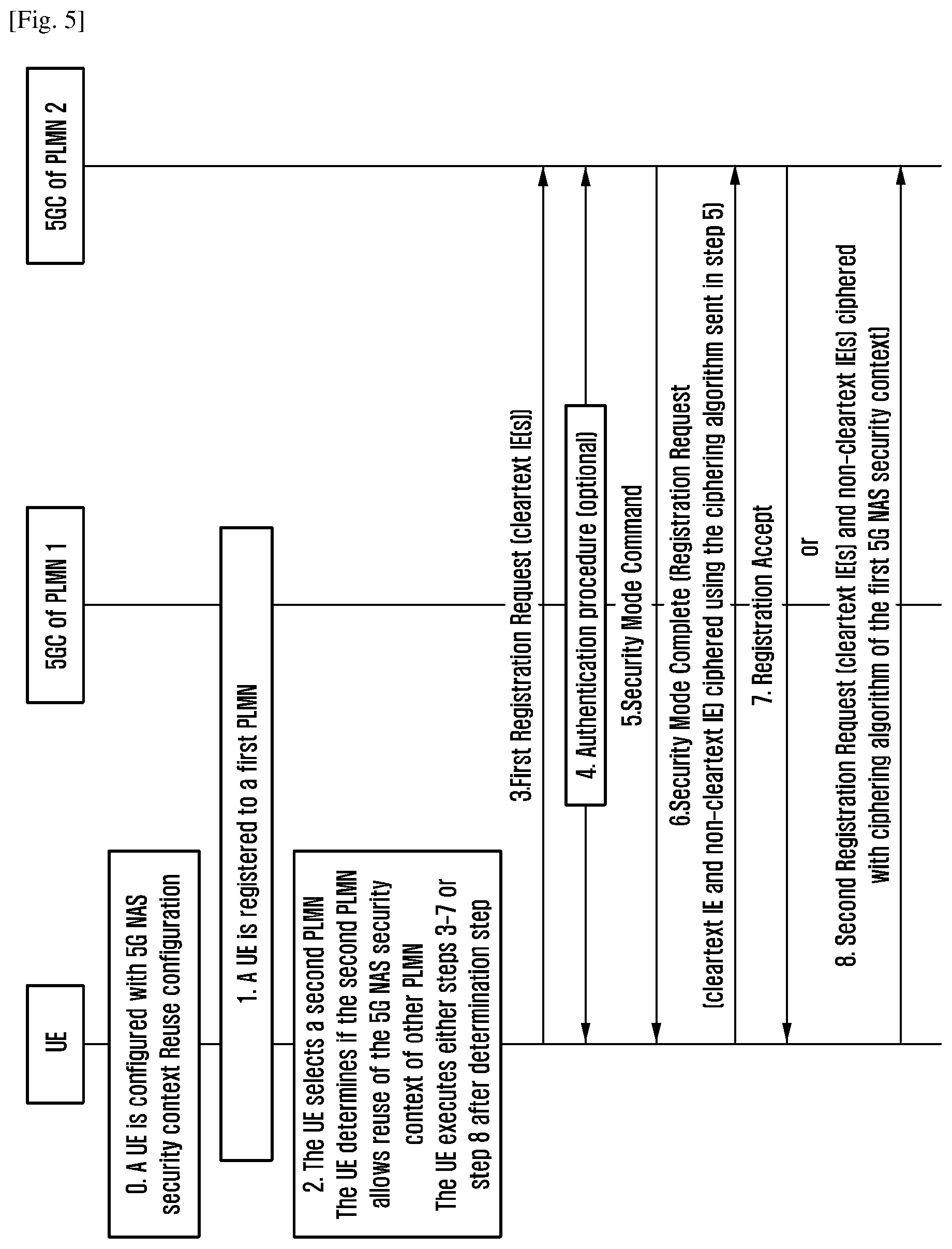 In yet another embodiment, initiating the registration procedure comprises determining by the UE, whether the second PLMN allows reuse of a 5G NAS security context of other PLMN, wherein the UE is configured with the 5G NAS security context reuse configuration, and sending a second registration request to the second PLMN, wherein the second registration request comprises the cleartext IE and a non-cleartext IE ciphered using a ciphering method of the 5G NAS security context, in response to determining that the second PLMN allows reuse of the 5G NAS security context.