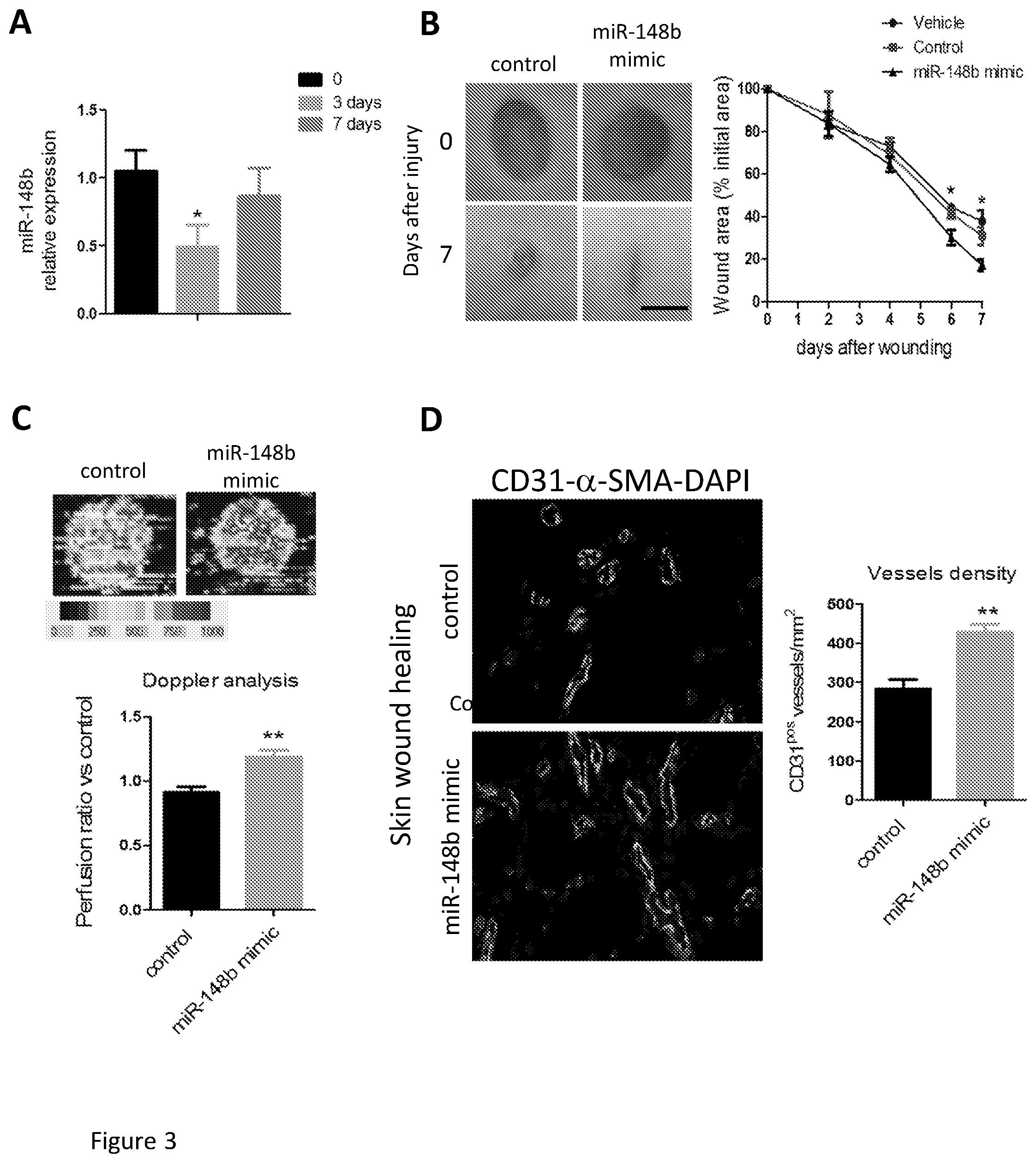 As shown in the examples, the inventors have surprisingly shown that, in ECs, miR-148b plays a critical role in promoting angiogenesis and that its inhibition promotes EndMT through regulation of the target genes, TGFB2 and SMAD2. Furthermore, they demonstrate that, in an in vivo model of wound healing, overexpression of miR-148b increases vascularisation and accelerates wound closure; whereas miR-148b inhibition leads to enhanced wound EndMT and impaired closure.