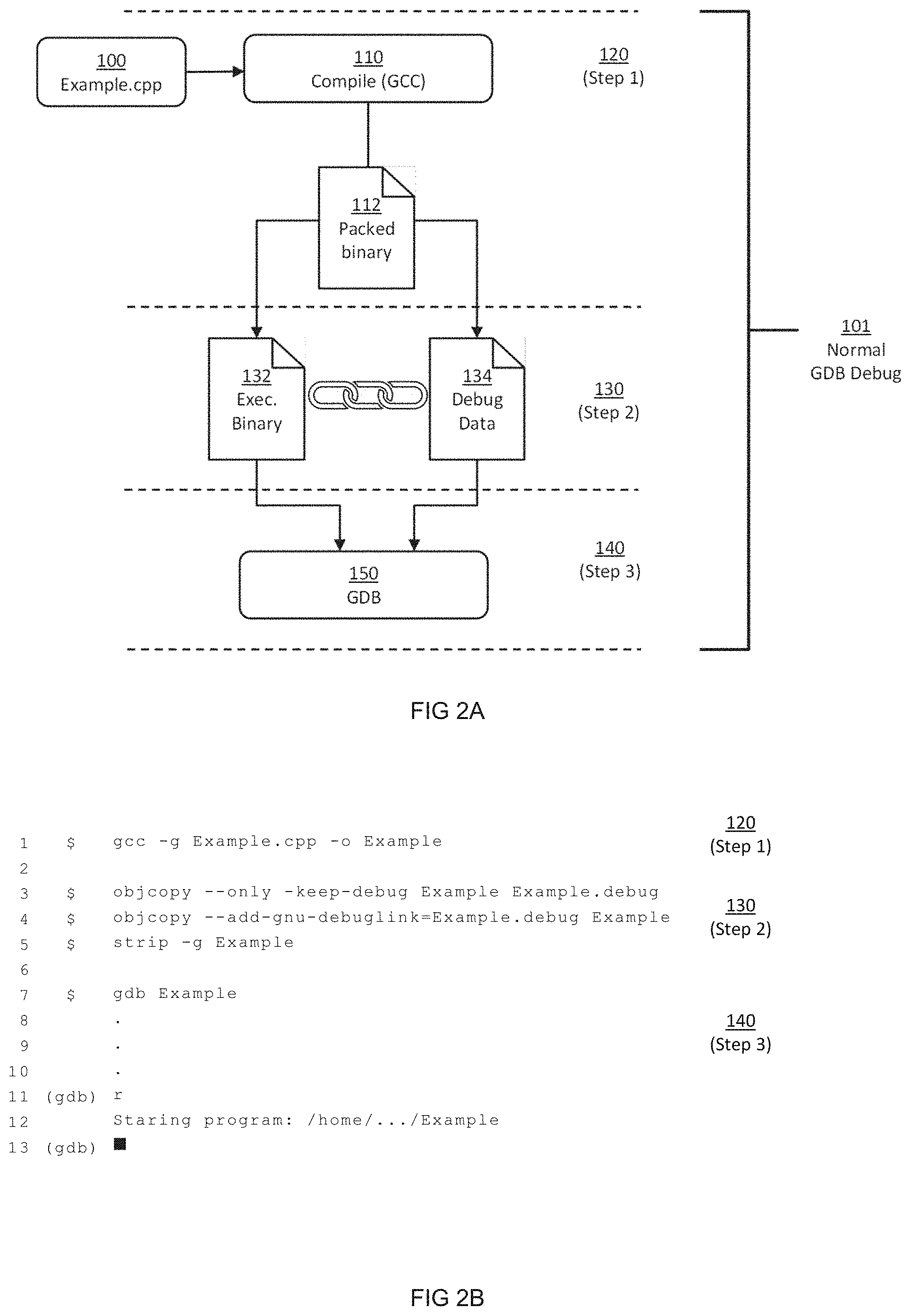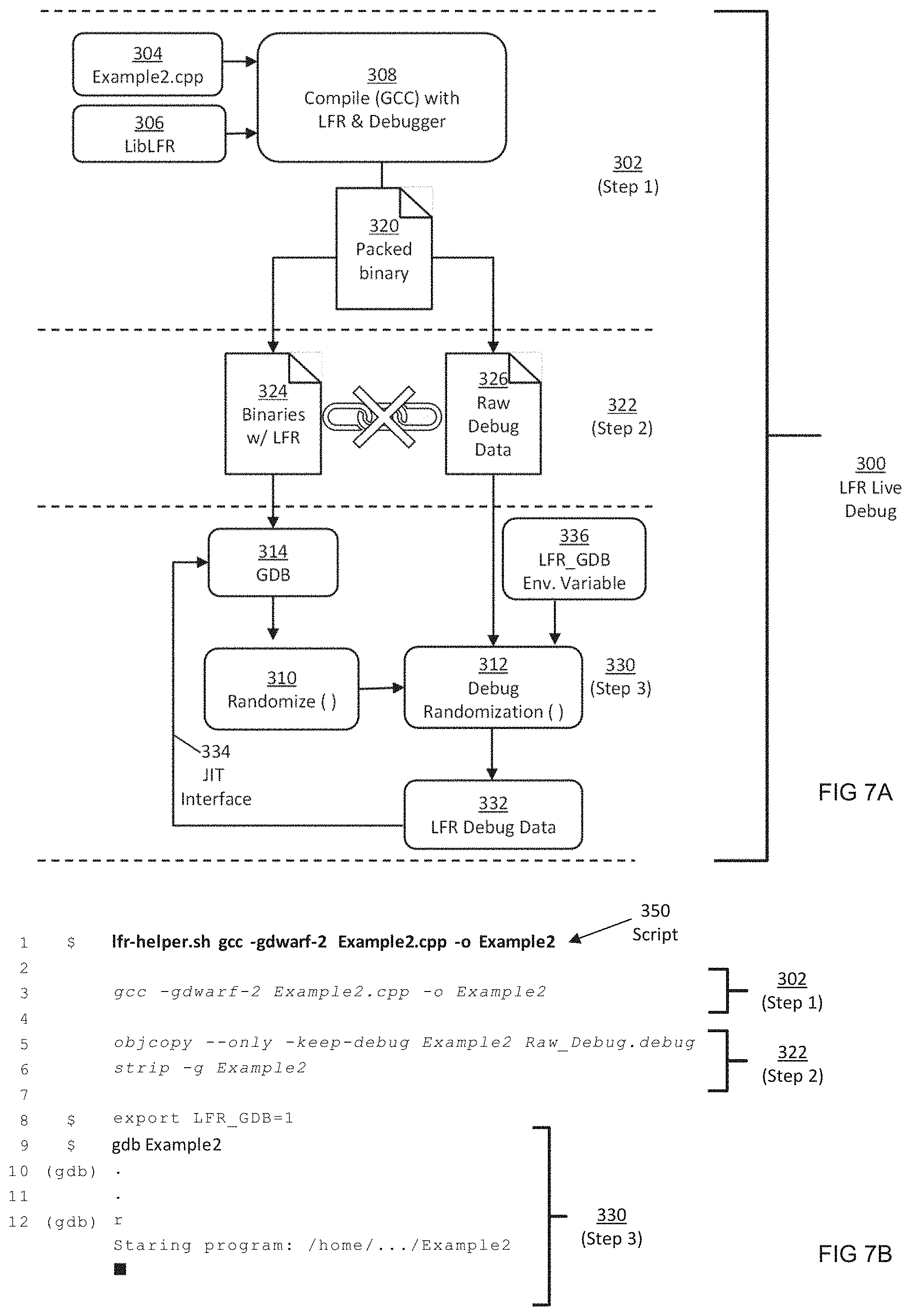 establishing an interactive debugging session by calling a debugger program along with an executable code component corresponding to a packed binary file, the executable code component including machine code that corresponds to blocks of original source code, wherein the calling causes the executable code component and a function randomization library corresponding to the blocks of original source code to be loaded into memory for execution under control of the debugger program; in response to a request for executing the executable code component, generating a randomly reorganized layout of the machine code corresponding to the blocks of the original source code in the memory based on subjecting the executable code component to a transformation defined in the function randomization library, in response to generating the randomly reorganized layout,