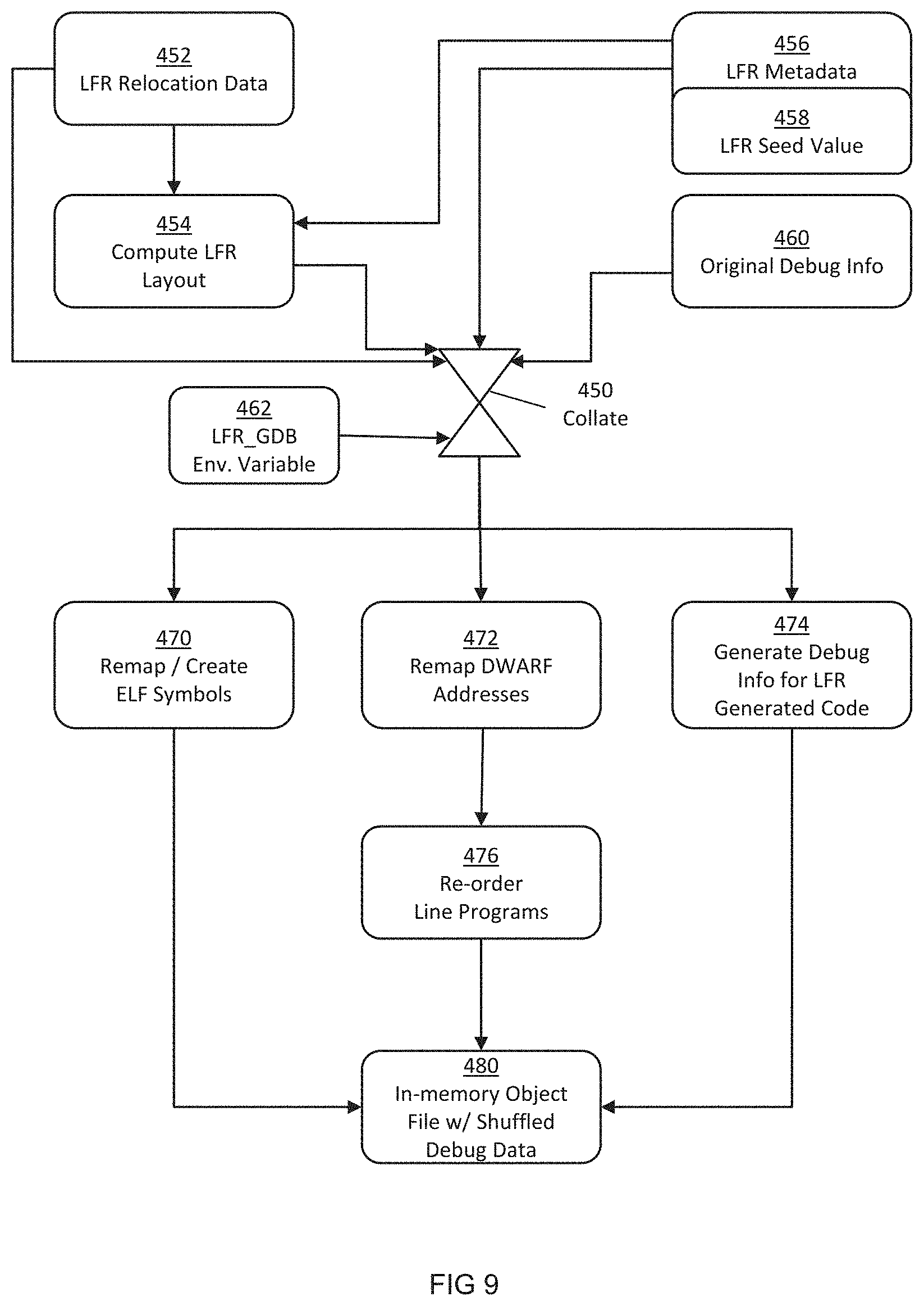 create an in-memory object file by using a debug data component corresponding to the packed binary file, the debug data component including symbol table information to debug the blocks of the original source code that is generated prior to the randomly reorganized layout, and update symbol table information in the debug data component based on the randomly reorganized layout of the machine code, and load the in-memory object file with the updated symbol information to debug the blocks of the original source code. 16. The system of 17. The system of generate, prior to the generating of the randomly reorganized layout, process-specific metadata that uniquely describes a first set of memory locations where the machine code corresponding to the blocks of the original source code reside; and update the first set of memory locations in the process-specific metadata to a second set of memory locations based on the randomly reorganized layout of the machine code, wherein the second set of memory locations are generated based on a randomization seed value. 18. The system of wherein the randomization seed value is stored in the process-specific metadata prior to the updating of the process-specific metadata. 19. The system of 20. The system of