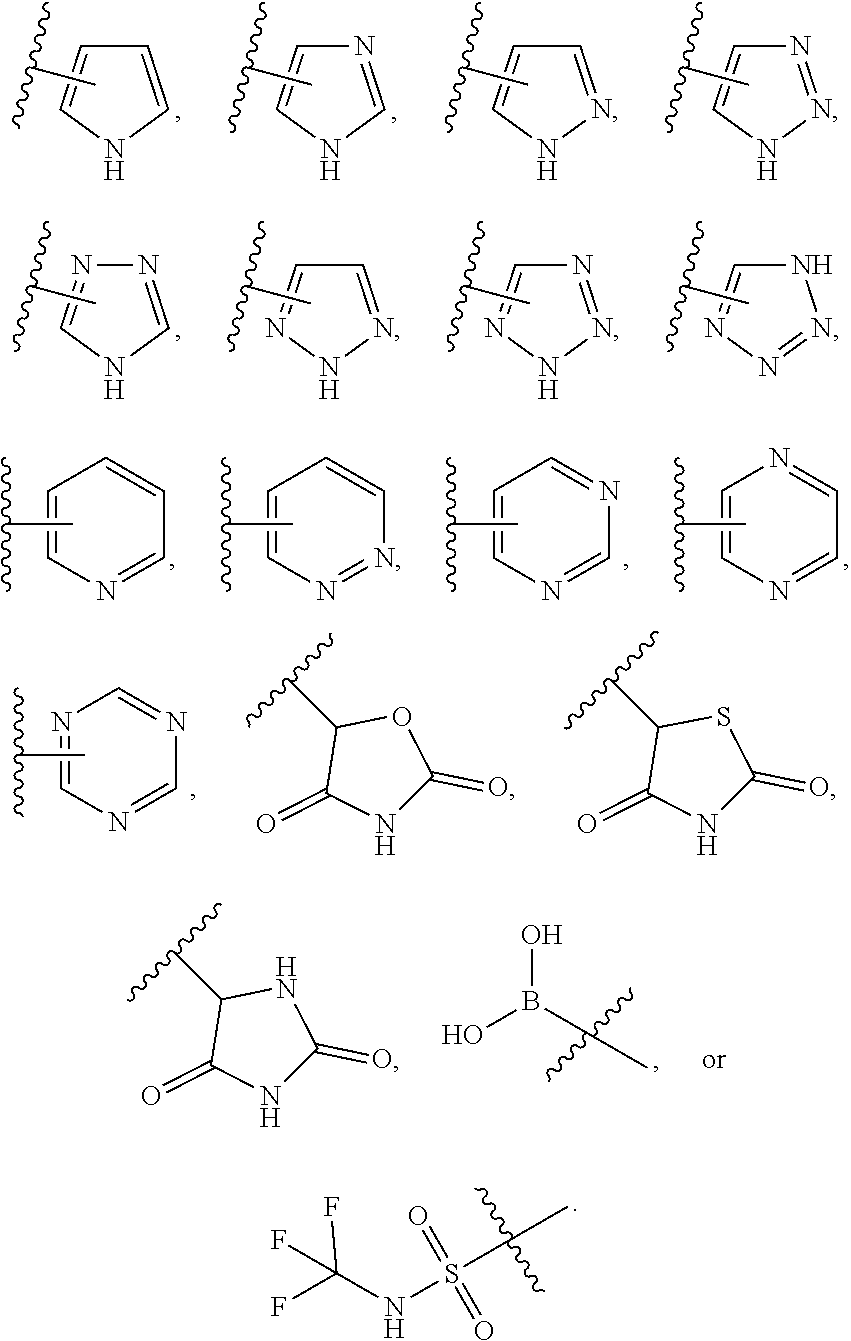 A is a substituted or unsubstituted 5- or 6-membered heterocyclic ring having at least one nitrogen heteroatom, boronic acid or