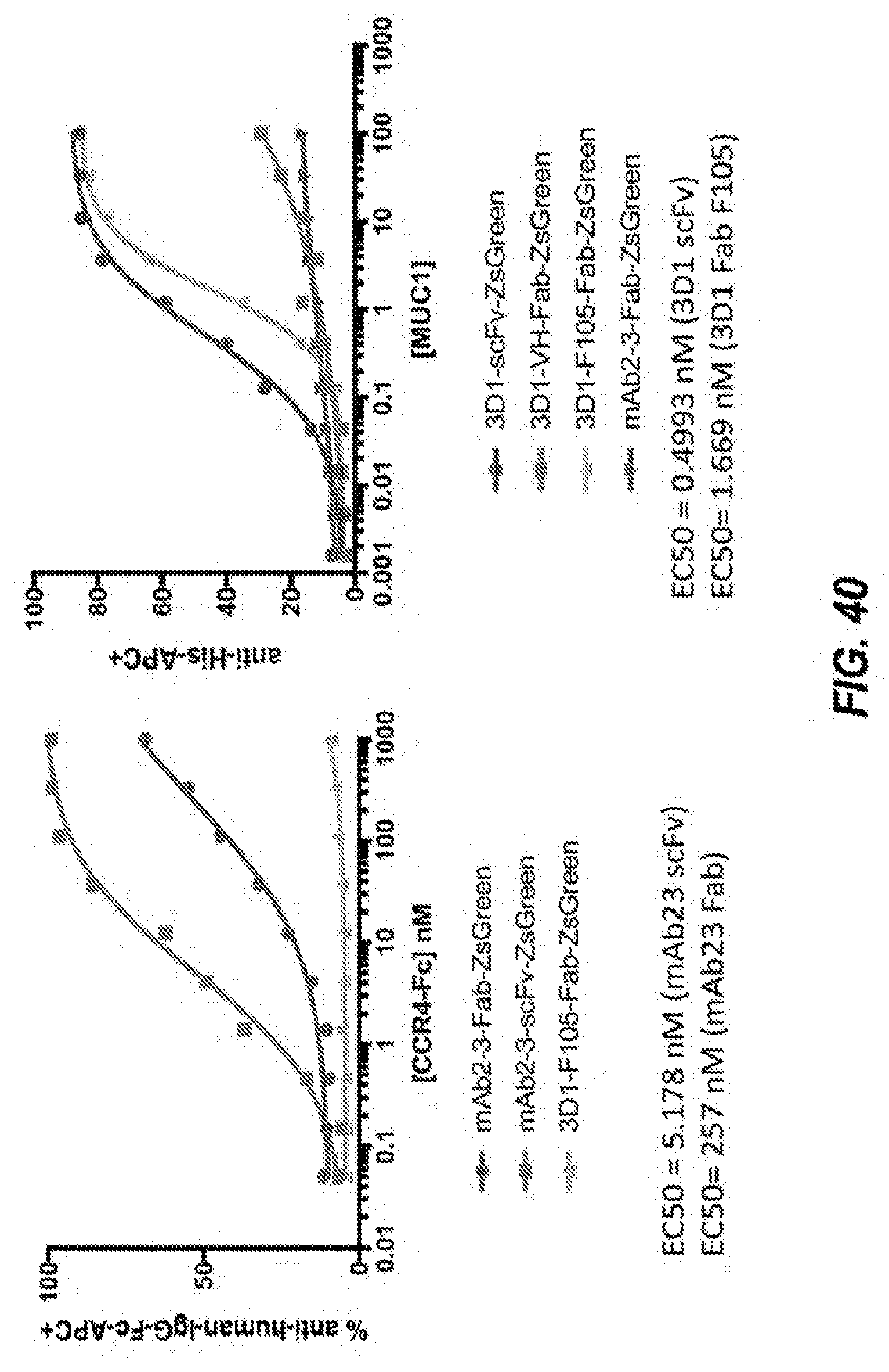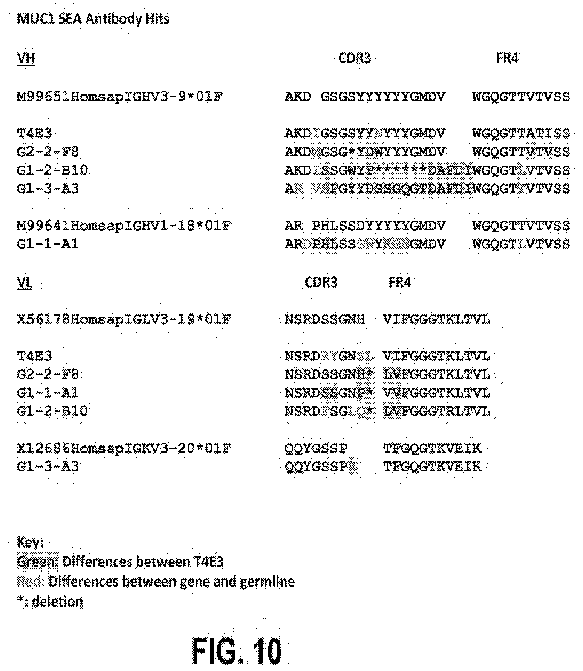 MUC1-SEA amino acid sequence (SEQ ID NO: 1) MGSSHHHHHHSSGLVPRGSHMASMTGGQQMGRDPLSTGVSFFFLSFHISN LQFNSSLEDPSTDYYQELQRDISEMFLQIYKQGGFLGLSNIKFRPGGGGG SVVVQLTLAFREGTINVHDVETQFNQYKTEAASRYNLTISDVSVSDVPFP FSAQSGAG MUC1-SEA Nucleotide sequence (SEQ ID NO: 22) ATGGGCAGCAGCCATCATCATCATCATCACAGCAGCGGCCTGGTGCCGCG CGGCAGCCATATGGCTAGCATGACTGGTGGACAGCAAATGGGTCGGGATC CGTTGTCTACTGGGGTCTCTTTCTTTTTCCTGTCTTTTNACATTTCAAAC CTCCAGTTTAATTCCTCTCTGGAAGATCCCAGCACCGACTACTACCAAGA GCTGCAGAGAGACATTTCTGAAATGTTTTTGCAGATTTATAAACAAGGGG GTTTTCTGGGCCTCTCCAATATTAAGTTCAGGCCAGGAGGAGGAGGAGGA TCTGTGGTGGTACAATTGACTCTGGCCTTCCGAGAAGGTACCATCAATGT CCACGACGTGGAGACACAGTTCAATCAGTATAAAACGGAAGCAGCCTCTC GATATAACCTGACGATCTCAGACGTCAGCGTGAGTGATGTGCCATTTCCT TTCTCTGCCCAGTCTGGGGCTGGGTAA T4E3 VH (SEQ ID NO: 23) caggtgcagctggtgcagtctgggggaggcttggtccagcctggggggtccctgagactctcctgtgcagcctctggattcacctttg atgattatgccatgcactgggtccggcaagctccagggaagggcctggagtgggtctcaggtattagttggaatagtggtagcatagg ctatgcggactctgtgaagggccgattcaccatctccagagacaacgccaagaactccctgtatctgcaaatgaacagtctgagagct gaggacacggccttgtattactgtgcaaaagatatcggttcagggagttattataactactactacggtatggacgtctggggccaggg gaccacggccaccatctcctca G2-2-F8 VH (SEQ ID NO: 24) caggtgcagctggtgcagtctgggggaggcttggtacagcctggcaggtccctgagactctcctgtgcagcctctggattcacctttga tgattatgccatgcactgggtccggcaagctccagggaagggcctggagtgggtctcaggtattagttggaatagtggtagcataggc tatgcggactctgtgaagggccgattcaccatctccagagacaacgccaagaactccctgtatctgcaaatgaacagtctgagagctg aggacacggccttgtattactgtgcaaaagatatgggaagtggctacgattggtactactacggtatggacgtctggggccaagggac cacggtcaccgtctcctca G1-3-A3 VH (SEQ ID NO: 25) caggtgcagctggtgcagtctgggggaggcttcgtacagcctggcaggtccctgagactctcctgtgcagcct ctggattcacctttgatgattatgccatgcactgggtccggcaagctccagggaagggcctggagtgggtctcaggtattagttggaata gtaataacataggctatgcggactctgtgaagggccgattcaccatctccagagagaacgcgaagaactccctgtatctgcaaatgaa cagcctgagagccgaggacacggctgtgtattactgtgcgagagttagtccgggttactatgatagtagtggccaagggactgatgctt ttgatatctggggccaagggaccacggtcaccgtctcctca G1-2-B10 VH (SEQ ID NO: 26) caggtgcagctggtgcagtctgggggaggcttggtacagcctggcaggtccctgagactctcctgtgcagcct ctggattcacctttgatgattatgccatgcactgggtccggcaagctccagggaagggcctggagtgggtctcaggtattagttggaata gtggtagcataggctatgcggactctgtgaagggccgattcaccatctccagagacaacgccaagaactccctgtatctgcaaatgaa cagtctgagagctgaggacacggccttgtattactgtgcaaaagatattagcagtggctggtaccctgatgclittgatatctggggcca aggcaccctggtcaccgtctcctca G1-1-A1 VH (SEQ ID NO: 27) caggtgcagctggtgcagtctggagctgaggtgaagaagcctggggcctcagtgaaggtctcctgcaaggctt ctggttacacctttaccagctatggtatcagctgggtgcgacaggcccctggacaagggcttgagtggatgggatggatcagcgctta caatggtaacacaaactatgcacagaaggtccagggcagagtcaccatgaccacagacacatccacgagcacagcctacatggagc tgaggagcctgagatctgacgacacggccgtgtattactgtgcgagagatccgcatcttagcagtggctggtacaagggaaacggtat ggacgtctggggccaaggaaccctggtcaccgtctcctca Muc1-R3-T4-D1 (SEQ ID NO: [ ]) caggtgcagctggtgcagtctgggggaggcttggtccagcctggggggtccctgagactctcctgtgcagcct ctggattcacctttgatgattatgccatgcactgggtccggcaagctccagggaagggcctggagtgggtctcaggtattagttggaat. agtggtagcataggctatgcggactctgtgaagggccgattcaccatctccagagacaacgccaagaactccctgtatctgcaaatga acagtctgagagctgaggacacggccttgtattactgtgcaaaagatatcggttcagggagttattataactactactacggtatggacgt ctggggccaggggaccacggtcaccgtctcctca Muc1-R3-T2-B1 (SEQ ID NO: [ ]) caggtgcagctggtgcagtctgggggaggcttggtacagcctggcaggtccctgagactctcctgtgcagcct ctggattcacctttgatgattatgccatgcactgggtccggcaagctccagggaagggcctggagtgggtctcaggtattagttggaata gtggtagcataggctatgcggactctgtgaagggccgattcaccatctccagagacaacgccaagaactccctgtatctgcaaatgaa cagtctgagagctgaggacacggccttgtattactgtgcaaaagatattagcagtggctggtaccctgatgcttttgatatctggggcca aggcaccctggtcaccgtctcctcag Muc1-R3-T4-B5 (SEQ ID NO: [ ]) caggtgcagctggtgcagtctgggggaggcttggtacagcctggcaggtccctgagactctcctgtgcagcct ctggattcacctttgatgattatgccatgcactgggtccggcaagctccagggaagggcctggagtgggtctcaggtattagttggaata gtggtagcataggctatgcggactctgtgaagggccgattcaccatctccagagacaacgccaagaactccctgtatctgcaaatgaa cagtctgagagctgaggacacggccttgtattactgtgcaaaagatatgggaagtggctacgattggtactactacggtatggacgtct ggggccaagggaccacggtcaccgtctcctca Muc1-R3-E4-B12 (SEQ ID NO: [ ]) caggtgcagctggtgcagtctggagccgaggtgaagaggcccggggcctcagtgaaggictcctgcaaggct tctggttacacttttagcacctacgctatcaactgggtgcgacaggcccctggacaagggcctgagtggatgggatggatcagcggtta caatggtaacacaaaatatgcacagaaggtccagggtagagtcatcatgaccacagacacatccacgaccacagcctacatggagtt gaggagcctgacatctgacgacacggccgtgtattactgtgcgagagatggagtgggagctgcctttgactactggggccagggaac cctggtcaccgtctcctcag Muc1-R3-T3-H9 (SEQ ID NO: [ ]) caggagcagctggtgcagtctggagctgaggtgaagaagcctggggcctcagtgaaggictcctgcaaggct tctggttacacctttaccagctatggtatcagctgggtgcgacaggcccctggacaagggcttgagtggatgggatggatcagcgctta caatggtaacacaaattatgcacagaaggtccagggcagagtcaccatgcccacagacacattcacgagcacagcctacatggagct gaggagcctgagatctgacgacacggccgtgtattactgtgcgagagatccgcatcttagcagtggctggtgcaagggaaacggtat ggacgtctggggccaaggaaccctggtctccgtctcctca Muc1-R3-T3-H3 (SEQ ID NO: [ ]) caggtgcagttggtgcagtttggaggtgaggtgaagaagcctggggcctcagtgaaggtctcctgcacagcttc tggttacacctataccagctatggtatcagctgggtgcgacaggcccctggacaagggcttgagtggatgggatggatcagcgcttac aatggtaacacaaactatgcacagaaggtccagggcagagtcaccatgaccacagacacatccacgagcacagcctacatggagct gaggagcctgagatctgacgacacggccgtgtattactgtgcgagagatccgcatgttagcagtggctggtacaagggaaacggtat ggacgtctggggccaaggaaccctggtcaccgtctcctca Muc1-R3-T4-D5 (SEQ ID NO: [ ]) gaggtgcagctggtgcagtctggggctgaggtgaagaagcctgggtcctcagtgaaggtctcctgcaaggctt ctggatacaccttctccaattatgatatcaactgggtgcgacaggccactggacacgggcttgagtggatggggagaatgaatcctaac agtggaaacacaggctatgcagagaagttccagggcagagtcatcatgaccagtgacacctccatagacacagcctacatggacctg agcagccttagatctgaggacacggccgtctattattgtgcgagggaaatacgtggtgcttttgatatctggggccaagggacaatggt caccgtctcttcag Muc1-R3-T3-B9 (SEQ ID NO: [ ]) gatgtgcagctggtgcagtctgggggtgaggcgaagaagcctgggtcctcagtgaaggtctcctgcaaggctt ctggatacaccttctgcaattatgatatcaactgggtgggacaggacactggacacgggcttgagtggatggggagaatgaatccttac agtggaaacacaggctatgcagagaagttccagggcagagtcatcatgaccagtgacacctccatagacacagcctacatggacctg agcagccttagatatgaggacacggccgtctattattgtgcgagggaaatacgtggtgcttttgatatgtggggccaagggccaatggt caccgtctcttcag Muc1-R3-E4-G10 (SEQ ID