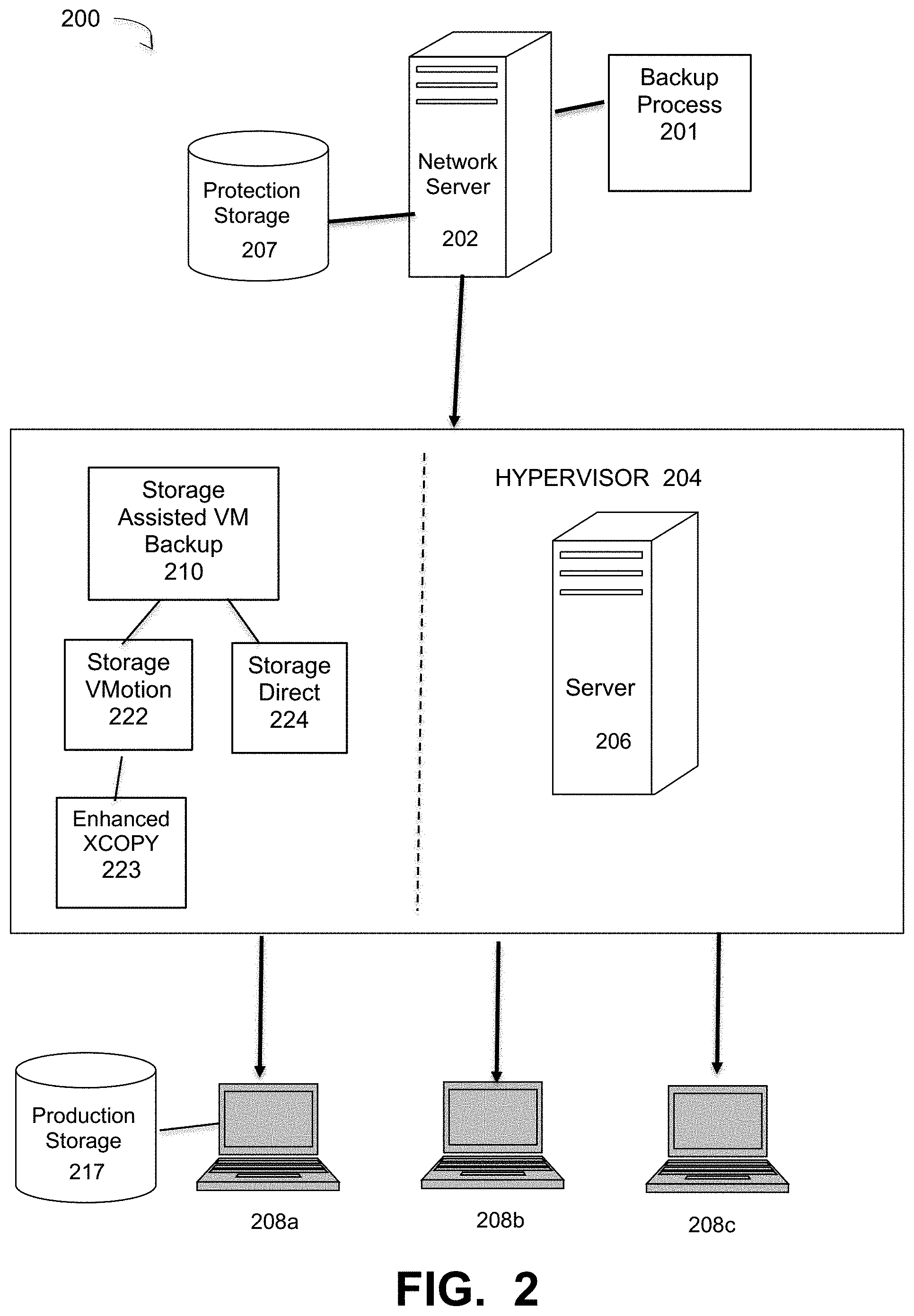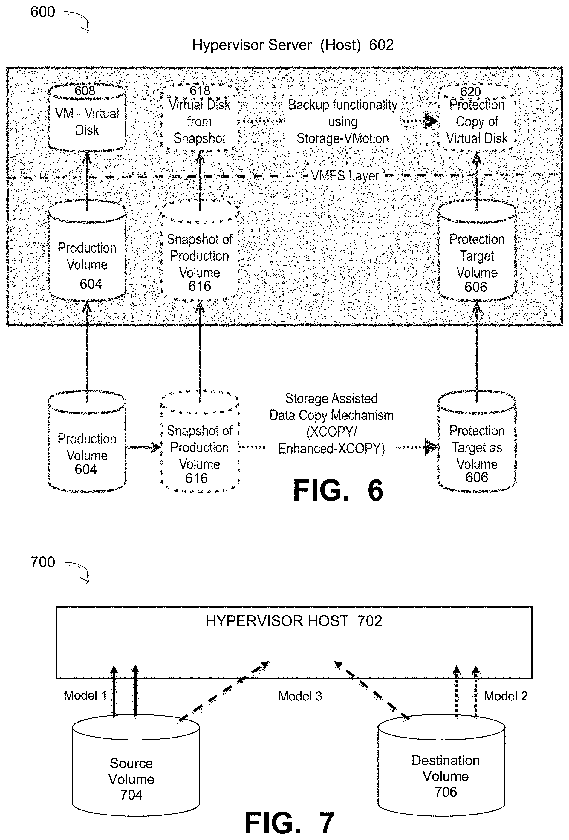 exposing a source volume in the primary storage and exporting it to a hypervisor host of the virtualized network so that the host can see the source volume; preparing a destination volume of the secondary storage as an empty volume and exporting it to the hypervisor host so that the host can see the destination volume; and moving, in the hypervisor host data from the exposed source volume to the exported empty destination volume using a combination of Storage Direct, Storage VMotion, and XCOPY technology, and wherein the XCOPY technology provides a direct transfer of data from the primary storage to the secondary storage. 2. The method of 3. The method of taking a full backup of the system followed by one or more regular incremental backups; receiving, for the full backup, an entire range of blocks by the secondary storage as part of an XCOPY operation, the entire range representing an entire Virtual Disk region; and finding, for the incremental backup, an overlap of changed blocks of storage logical units (LU) and XCOPY block ranges to get the changed blocks of the Virtual Disk. 4. The method of 5. The method of 6. The method of 7. The method of 8. The method of 9. The method of 10. A computer-implemented method of transferring data directly from a production volume to a protection volume, comprising: