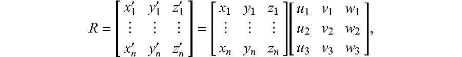 R=[x1y1z1xnynzn]=[x1y1z1xnynzn][u1v1w1u2v2w2u3v3w3],